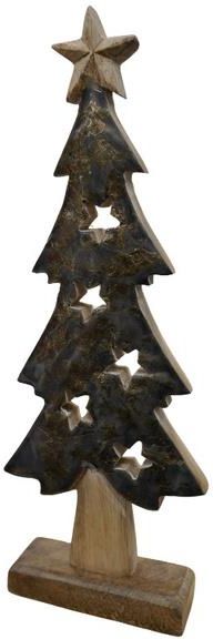 Choinka drewniana czarna z ażurowymi gwiazdkami 40cm