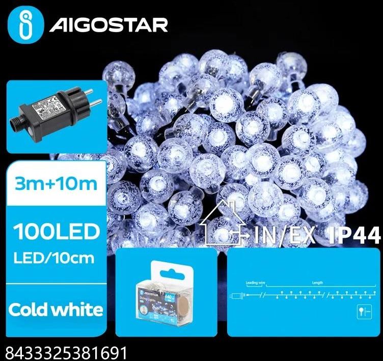 Niskonapięciowe lampki choinkowe kryształowe kulki 100led Zimne 10m+3m Niskonapięciowe lampki choinkowe kryształowe kulki 100led Zimne 10m+3m Pilawa