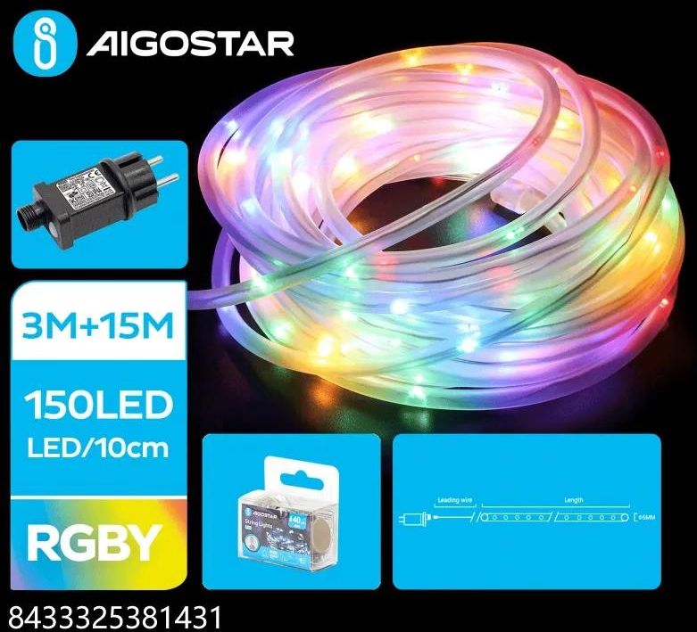 Niskonapięciowy wąż świetlny zewnętrzny Φ5mm, multikolor, 15m Niskonapięciowa taśma świetlna rurka Φ5mm, RGBY, 15m Pilawa