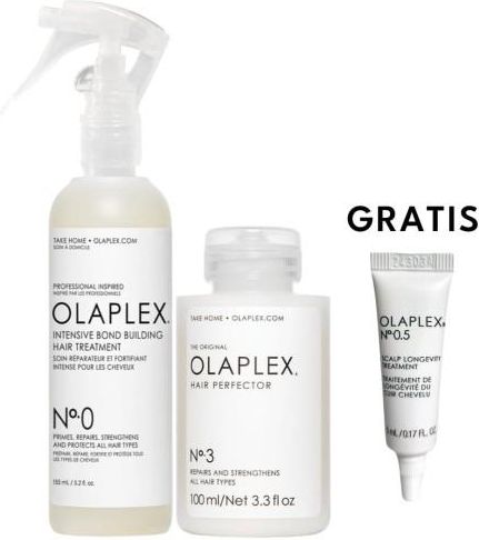 Olaplex No.0, No.3, No.0.5 5ml GRATIS - kuracje odbudowujące I do skóry głowy Olaplex No.0 i Olaplex No.3 kuracje odbudowujące. Zestaw idealny dla osób, które chcą odbudować i zregenerować włosy w warunkach domowych. To najbardziej praktyczny zestaw do włosów bardzo zniszczonych. Łatwość wykonania kuracji pozwala na osiagnięcie satysfakcjonujących efektów we własnym domu. Kupując TEN zestaw otrzymujesz również Olaplex No.0.5 Scalp Longevity w wersji 5ml GRATIS! Olaplex No.0, No.3, No.0.5 5ml GRATIS - działanie: odbudowuje; wzmacnia strukturę; przywraca naturalny wygląd. Olaplex No.0, No.3, No.0.5 5ml GRATIS- zastosowanie: Idealny do włosów bardzo zniszczonych. Olaplex No.0 rozchyla łuskę włosa i wzmacnia jego strukturę co pozwala Olaplex No.3 głębiej wniknąć we włos i odbudować mostki dwusiarczkowe. Olaplex No.0, No.3, No.0.5 5ml GRATIS - zestaw zawiera: Olaplex No. 0 Intensive Bond Builder - intensywna kuracja wzmacniająca i chroniąca włosy 155 ml To intensywna kuracja inspirowana profesjonalnym zabiegiem przygotowuje włosy do głębszej naprawy. Odbudowuje wiązania, wzmacnia i chroni ich strukturę. Używaj jako pierwszy krok dwuczęściowego systemu z No.3 Hair Perfector by wzmocnić i odbudować wszystkie typy zniszczonych włosów. Olaplex No. 3 Hair Perfector - kuracja wzmacniająca i odbudowująca do włosów 100 ml To najbardziej skoncentrowany produkt z serii Olaplex do domu. To niejako „mini kopia” OLAPLEX No. 2, który przeznaczony jest do użytku profesjonalnego. Odbudowuje i wzmacnia strukturę włosów, przywraca ich naturalny wygląd. Do każdego rodzaju włosów. Im bardziej włosy zniszczone i uwrażliwione, tym większy efekt. Ten produkt to absolutny must-have dla włosów poddawanych koloryzacji oraz stylizacji ciepłem! Olaplex No.0, No.3, No.0.5 5ml GRATIS - sposób użycia: Na czyste, umyte bądź wilgotne włosy nanieś Olaplex No.0. Pozostaw na włosach 10 minut. Po upływie 10 minut zastosuj Olaplex No.3 (nie spłukując Olaplex No.0) i pozostaw na kolejne 10 minut. Spłucz dokładnie (jeżeli czujesz obciążenie, umyj włosy szamponem Olaplex No.4) i nałóż odżywkę Olaplex No.5. Olaplex No.0, No.3, No.0.5 5ml GRATIS - porada eksperta Rozczesz włosy przed nałożeniem No.0, aby zapewnić równomierne wchłanianie. W przypadku grubych, szorstkich lub długich włosów pracuj małymi pasmami, aby upewnić się, że każda część włosów została równomiernie pokryta.