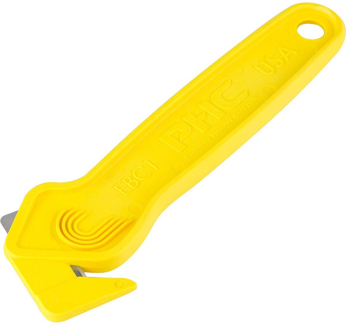 NÓŻ BEZPIECZNY Z UKRYTYM OSTRZEM PHC EBC1 Nóż bezpieczny do folii EBC1 to alternatywa dla modelu DFC364 w sytuacji gdy mamy potrzebę rozcinać kartonowe opakowania. Nadaje się do cięcia folii termokurczliwej, plastikowych toreb, plastikowych pasków, sznurka i innych i kartonowych pudeł. Korzystając z tego noża z ukrytym ostrzem można wyeliminować nagie ostrza w miejscu pracy i zapobiec kosztownym urazom spowodowanym skaleczeniami. Ponadto zintegrowany rozdzielacz taśmy doskonale nadaje się do otwierania pudełek bez uszkadzania zawartości, zapewniając jednocześnie bezpieczeństwo pracownikom. Eliminuje nagie ostrza z miejsca pracy. Tnie folię termokurczliwą, plastikowe torby, plastikowe paski, sznurek i inne. Wytrzymałe stalowe ostrze. Zintegrowany rozdzielacz taśmy doskonale nadaje się do otwierania pudełek bez uszkadzania zawartościśnie bezpieczeństwo pracownikom. Można stosować ze smyczą CL-36.