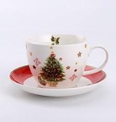 Filiżanka 555-7019 Filiżanka Jumbo 400 ml z motywem świątecznym – idealna na zimowe wieczory Wprowadź magię Świąt Bożego Narodzenia do swojego domu dzięki wyjątkowej filiżance jumbo 400 ml. To nie tylko praktyczne naczynie do kawy, herbaty czy gorącej czekolady, ale także piękna dekoracja stołu. Filiżanka została ozdobiona uroczym, kolorowym nadrukiem przedstawiającym choinkę bożonarodzeniową, czerwone gwiazdy betlejemskie oraz złote akcenty, które dodają elegancji i świątecznego blasku. Wykonana z wysokiej jakości porcelany, filiżanka jest trwała, wygodna w użytkowaniu i zachwyca starannością wykonania. Pojemność 400 ml sprawia, że jest idealna dla miłośników dużych porcji ulubionego napoju. W zestawie znajduje się także dopasowany spodek, ozdobiony tym samym świątecznym motywem, co tworzy harmonijną i stylową całość. Dlaczego warto wybrać filiżankę jumbo 400 ml? Świąteczny design z choinką i gwiazdą betlejemską. Duża pojemność – idealna do kawy, herbaty i gorącej czekolady. Wysokiej jakości porcelana. W zestawie praktyczny i ozdobny spodek. Doskonały pomysł na prezent pod choinkę. Stwórz wyjątkowy klimat podczas świątecznych spotkań i podaruj sobie lub bliskim filiżankę jumbo 400 ml ze świątecznym motywem, która łączy w sobie elegancję, praktyczność i magię Bożego Narodzenia.