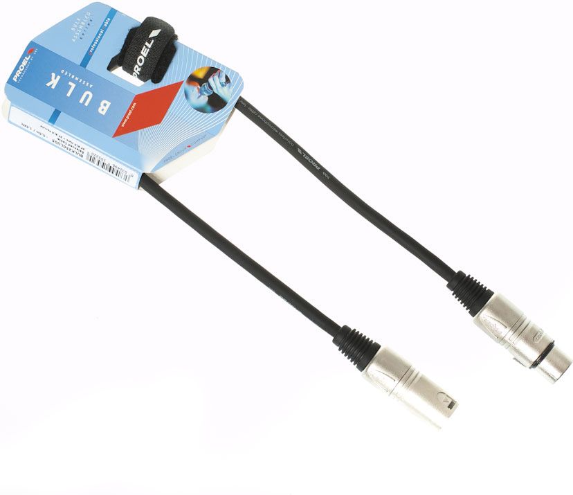 Proel BULK330LU05 - gotowy kabel DMX do sygnału DMX512 Żeńskie złącze PROEL XLR3FVPRON Męskie złącze PROEL XLR3MVPRON Długość: 0,5 metra Kolor: czarny.