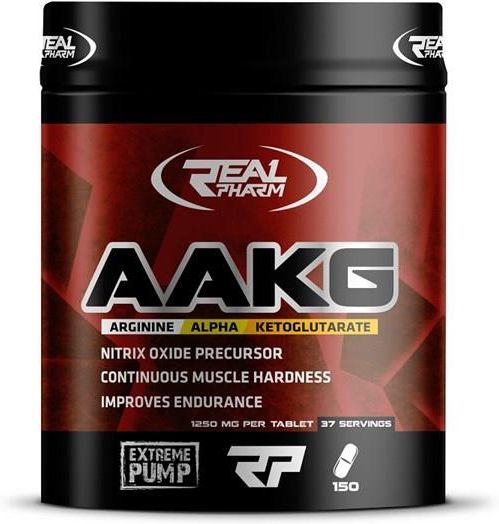 AAKG połączone z solą kwasu glutarowego to dawka energii, wytwarzanej ze związków znajdujących się już w twoim oranizmie! AAKG wykorzystuje Twój potencjał, podnosi go, a efekt pompy mięśniowej uzyskujesz momentalnie! AAKG (alfa-ketoglutaren L-argininy) Real Pharm to aż 1250 mg soli kwasu glutarowego oraz argininy w jednej tabletce! AAKG połączone z solą kwasu glutarowego to dawka energii, wytwarzanej ze związków znajdujących się już w twoim oranizmie! AAKG wykorzystuje Twój potencjał, podnosi go, a efekt pompy mięśniowej uzyskujesz momentalnie! AAKG działa lepiej niż sama arginina, zwiększa moc ze względu na to, że bezpośrednio wpływa na budowanie masy mięśniowej. Jest składnikiem pokarmowym, przez co znacznie szybciej się wchłania. Sprzyja dobremu ukrwieniu, zwiększa przepływ krwi do mięśni. Stosowany przed treningiem zapewnia pompę mięśniową, zwiększa także siłę i wytrzymałość. Regeneracja z AAKG Real Pharm przebiega znacznie szybciej, gdyż odżywia i dotlenia komórki w mięśniach. Lepsze dotlenienie to doskonała regeneracja oraz odbudowa uszkodzonych i zmęczonych treningiem mięśni. AAKG Real Pharm ma dobry wpływ na libido, zwiększa popęd seksualny, usprawnia przepływ krwi i dodaje energii. Wraz z suplementem diety Twoja sprawność seksualna wzrośnie. AAKG Real Pharm to świetne uzupełnienie cykli keratynowych. Jeżeli intensywnie trenujesz, możesz połączyć produkt z monohydratem kreatyny, HMB lub stosować pojedynczo. AAKG Real Pharm to idealne rozwiązanie zarówno dla profesjonalnych sportowców, jak i osób amatorsko uprawiających sport. Jeżeli dążysz do doskonałej sylwetki, utrzymania prawidłowej formy, AAKG Real Pharm jest właśnie dla ciebie.