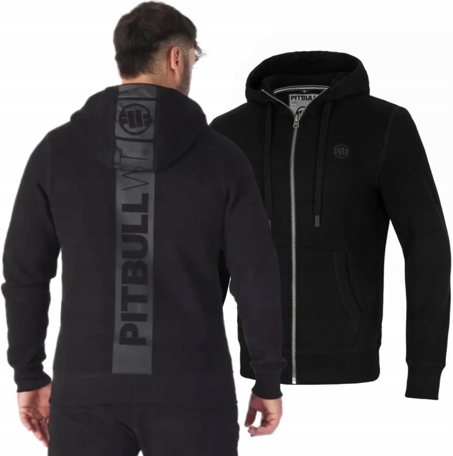 132025.9000.L Bluza rozpinana z kapturem PITBULL New Brushed Fleece Group Hilltop 24 - Pitbull Kolor: Czarny Wodoodporność: Gwarancja: Materiał dominujący: Bawełna, Poliester Gramatura materiału: 360 g/m² Pranie: Waga produktu: Membrana: Sezon: jesień/zima Kaptur: Tak Wypełnienie: Materiał wewnętrzny/podszewki: Zapięcie: Tak Ilość ki Sportowa bluza z kapturem podkreślona logotypem marki na plecach i kapturze. Rozpinana bluza z kapturem Hilltop producenta PITBULL West Coast z nowej kolekcji jesień/zima 2024 to uniwersalna, codzienna bluza w sportowym stylu. Silikonowe logo marki na piersi oraz wysokiej jakości nadruk z logotypem marki umieszczone na plecach i na kapturze. Najnowsza kolekcja New Brushed Fleece Group została wzbogacona o nowe kolory. W składzie materiału dominuje bawełna zapewniająca komfort noszenia i przewiewność tkaniny. Bluza Hilltop została uszyta z bawełny o gramaturze 360g/m, dzięki czemu idealnie sprawdzi podczas jesienno-zimowych dni. Wewnętrzne podszycie miękką taśmą na linii karku, która chroni skórę przed otarciem, a standardowy krój wspiera swobodę ruchów. Dzięki ściągaczom umieszczonym przy rękawach i na dole nie musisz poprawiać bluzy w trakcie dnia. W dwóch bocznych kieszeniach możesz ogrzewać ręce lub nosić małe drobiazgi. Cechy produktu: materiał 60% bawełna, 40% poliester; wykonana z wysokogatunkowej bawełny 360 gr/m2; zamek na całej długości; regulowany kaptur; dwie kieszenie; szeroki, mocny ściągacz na rękawach i na dole bluzy; jedwabna lamówka umieszczona przy szyi, chroniąca skórę przed otarciami; aplikacja z niewielkim logo firmy na piersi; duży nadruk na plecach i kapturze; najwyższa jakość; staranne wykonanie z dbałością o detale. Sportowa bluza z kapturem podkreślona logotypem marki na plecach i kapturze. Rozpinana bluza z kapturem Hilltop producenta PITBULL West Coast z nowej kolekcji jesień/zima 2024 to uniwersalna, codzienna bluza w sportowym stylu. Silikonowe logo marki na piersi oraz wysokiej jakości nadruk z logotypem marki umieszczone na plecach i na kapturze. Najnowsza kolekcja New Brushed Fleece Group została wzbogacona o nowe kolory. W składzie materiału dominuje bawełna zapewniająca komfort noszenia i przewiewność tkaniny. Bluza Hilltop została uszyta z bawełny o gramaturze 360g/m, dzięki czemu idealnie sprawdzi podczas jesienno-zimowych dni. Wewnętrzne podszycie miękką taśmą na linii karku, która chroni skórę przed otarciem, a standardowy krój wspiera swobodę ruchów. Dzięki ściągaczom umieszczonym przy rękawach i na dole nie musisz poprawiać bluzy w trakcie dnia. W dwóch bocznych kieszeniach możesz ogrzewać ręce lub nosić małe drobiazgi. Cechy produktu: materiał 60% bawełna, 40% poliester; wykonana z wysokogatunkowej bawełny 360 gr/m2; zamek na całej długości; regulowany kaptur; dwie kieszenie; szeroki, mocny ściągacz na rękawach i na dole bluzy; jedwabna lamówka umieszczona przy szyi, chroniąca skórę przed otarciami; aplikacja z niewielkim logo firmy na piersi; duży nadruk na plecach i kapturze; najwyższa jakość; staranne wykonanie z dbałością o detale.