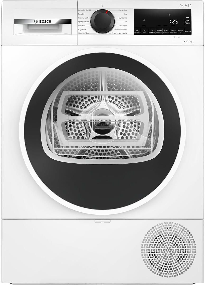 Bosch Serie 6 WQG233DGPL NAJWAŻNIEJSZE CECHY URZĄDZENIA Trwale energooszczędne suszenie Dzięki zastosowaniu w naszych suszarkach pompy ciepła, urządzenia są bardzo oszczędne w eksploatacji a cykl suszenia przebiega wyjątkowo efektywnie. Dodatkowy, filtr wychwytuje zabrudzenia, które mogą osadzać się na wymienniku ciepła, który stanowi element pompy ciepła. Takie zanieczyszczenia zmniejszają efektywność wymiany ciepła, co wydłuża proces suszenia, a tym samym zwiększa pobór energii. Filtr wymiennika ciepłą jest łatwy w czyszczeniu, co oszczędza czas poświęcony na obsługę urządzenia. Technologia pompy ciepła - delikatne i energooszczędne suszenie Innowacyjna technologia pompy ciepła, zastosowana w suszarkach Bosch to gwarancja delikatnego i energooszczędnego suszenia. Dzięki zastosowanym rozwiązaniom, tkaniny suszone są w niższej temperaturze w porównaniu z suszarkami konwencjonalnymi. Zastosowanie pompy ciepła umożliwiło również znaczące obniżenie poboru energii elektrycznej wykorzystywanej w procesie suszenia. W suszarkach Bosch z pompą ciepła, ubrania traktowane są wyjątkowo delikatnie, podobnie jak nasz budżet. Automatycznie wykrywa, kiedy Twoje pranie jest już odpowiednio suche Czujniki wilgotności AutoDry kontrolują suszenie i zatrzymują cykl, gdy osiągnięty zostanie efekt, którego oczekujesz np.: do prasowania albo suche i gotowe do złożenia ubrania. Czujniki stale mierzą temperaturę i wilgotność dla ochrony prania przed przegrzaniem i przesuszeniem i kończą proces suszenia w odpowiednim momencie, dzięki czemu oszczędzasz też czas i energię elektryczną. Błyskawiczne suszenie - Program Super 40’ Suszenie w ciągu zaledwie 40 minut. Precyzyjny system kontrolujący temperaturę, monitorowanie w czasie rzeczywistym stopnia wilgotności ubrań umożliwia założenie odzieży tuż po zakończonym cyklu dedykowany. Program przeznaczony dla około 1kg odzieży z włókien syntetycznych lub cienkich tkanin bawełnianych, które nie wymagają delikatnego suszenia. Razem z praniem w programie Super 15’, mamy wypraną i wysuszoną odzież w mniej niż godzinę! Program do suszenia pościeli z obustronnym obrotem bębna Suszarki Bosch ze specjalnym programem do suszenia pościeli, obracają bęben w obu kierunkach, aby zapobiec splątywaniu się suszonych tkanin. Dzięki temu duże i małe tkaniny można suszyć razem, uzyskując doskonałe rezultaty. Suszenie wełny i obuwia w najdelikatniejszy sposób Specjalny kosz oraz dedykowany program pozwala suszyć wełnę w najdelikatniejszy sposób. Odzież wełnianą należy luźno ułożyć w koszu na wełnę, który następnie zostaje zawieszony w suszarce, sprawiając, że filcowanie i kurczenie się materiału, to już przeszłość. Oprócz skracania czasu suszenia nawet o 75%, kosz może być także wykorzystywany z innymi delikatnymi tkaninami i sportowym obuwiem. Sprawdź pozostałą ofertę produktów Bosch dla dużego AGD Piekarniki Płyty indukcyjne Pralki Suszarki Okapy Lodówki wolnostojące Lodówki do zabudowy  Zmywarki wolnostojące Zmywarki do zabudowy  .lnd_header img { transition: transform .4s ease-out; } .lnd_header img:hover { transform: scale(1.2); } .lnd_2header2 img { transition: transform .4s ease-out; } .lnd_2header2 img:hover { transform: scale(1.2); } .lnd_3header3 img { transition: transform .4s ease-out; } .lnd_3header3 img:hover { transform: scale(1.2); } .lnd_4header4 img { transition: transform .4s ease-out; } .lnd_4header4 img:hover { transform: scale(1.2); } .lnd_5header5 img { transition: transform .4s ease-out; } .lnd_5header5 img:hover { transform: scale(1.2); } Zasady akcji: 1. Kup urządzenie objęte promocją od 02.09.2025 r. do 30.11.2025 r.  2. Podziel się opinią na stronie sprzedawcy, w porównywarce cenowej lub na stronie bosch-home.pl. W treści opinii umieść hashtag #opiniamotywowanapromocją  3. Wypełnij formularz  4. Zyskaj zwrot na konto do 1000 zł * Zgłoszenia można dokonywać do dnia 31.12.2025 r.