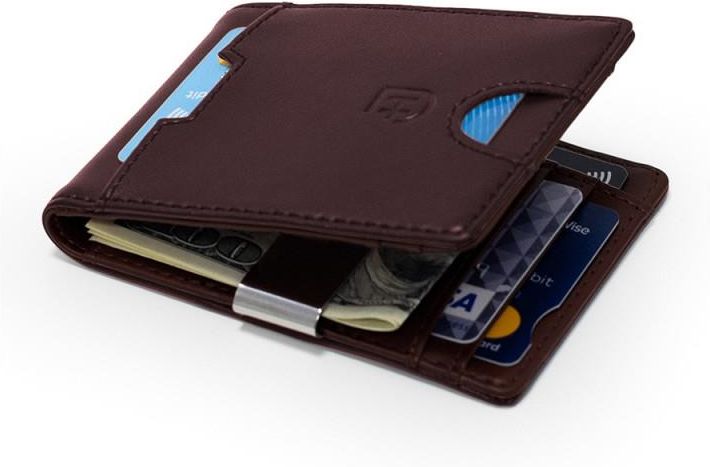 Cienki portfel męski w brązowym kolorze z praktycznymi dodatkami (Smart Wallet)