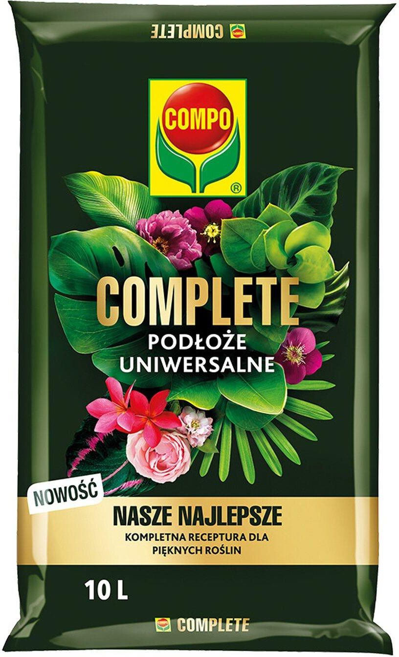 COMPO COMPLETE Podłoże uniwersalne 10L Najlepsze podłoże do sadzenia wszystkich roślin domowych i balkonowych Kompletna receptura zawierająca startową dawkę nawozu na 12 tygodni Niezwykle bogaty skład zapewnia zdrowy wzrost roślin Doskonały wybór dla Twoich roślin Najlepsze podłoże, które zostało specjalnie opracowane do sadzenia oraz przesadzania roślin domowych, balkonowych i tarasowych. Kompletna receptura zawierająca w swoim składzie najwyższej jakości dodatki uszlachetniające sprawia, ze podłoże to idealny wybór dla twoich roślin. Certyfikowane surowce i bogaty skład podłoża zapewniają stabilny rozwój, wzmacniają odporność na choroby i szkodniki oraz pozytywnie wpływają na kondycje roślin. Podłoże posiada wszystkie niezbędne składniki gwarantujące piękne i obficie kwitnące rośliny. Podłoże certyfikowane Torf użyty do produkcji podłoży pochodzi z certyfikowanych złóż, które stale poddawane są rekultywacji. Startowa dawka nawozu zapewnia dostęp do składników pokarmowych aż do 12 tygodni od posadzenia rośliny. Wulkaniczny perlit rozluźnia i spulchnia podłoże dzięki czemu zapewnia dostęp powietrza, wody i składników pokarmowych do korzeni. Zestaw mikroskładników pokarmowych takich jak bor, miedz, żelazo, mangan, molibden i cynk gwarantuje doskonałe warunki rozwoju roślin. Aktywator korzeni stymuluje rozwój systemu korzeniowego i zapewnia stabilny wzrost oraz odżywienie części nadziemnej rośliny. Naturalna glinka posiada zdolność magazynowania i stopniowego uwalniania składników pokarmowych, zwiększając jednocześnie stabilność podłoża. Hydrożel Aqua-Mix zapewnia optymalna wilgotność podłoża i ułatwia równomierne rozprowadzanie wody wokół korzeni. Sposób użycia Zacznijmy od podstaw Przesadzaj swoje rośliny nie rzadziej niż co 2 lata, gdyż z biegiem czasu podłoże traci swoje pozytywne właściwości, a powiększająca się bryła korzeniowa potrzebuje miejsca do wzrostu. Do sadzenia przygotuj doniczkę o średnicy nieco większej (ok 2 cm) niż średnica bryły korzeniowej. Zbyt duża doniczka nie będzie odpowiednia. Doniczka lub pojemnik powinny mieć otwory odpływowe do odprowadzania nadmiaru wody. Przygotuj podłoże Przed posadzeniem rośliny wymieszaj i rozluźnij strukturę podłoża tak, aby rozbić ewentualne grudki. Na dnie doniczki warto dodać warstwę drenażową (np. kilka małych kamyków lub keramzyt), następnie wypełniamy 1/3 doniczki podłożem formując lejkowate zagłębienie na środku. Wreszcie sadzimy Wyjmij roślinę ze starej doniczki, lekko rozluźnij bryłę korzeniową i usuń obumarłe korzenie. Umieść bryłę korzeniową rośliny w zagłębieniu delikatnie dociskając, tak aby znalazła się poniżej brzegu doniczki. Jeżeli bryła korzeniowa wystaje ponad doniczkę wyjmij część ziemi, lub zmień doniczkę na większą. Ważny finał Dokładnie zasyp bryłę korzeniową pozostałym podłożem, jednocześnie delikatnie wciskając je głębiej, aby wypełnić wszystkie wolne przestrzenie i ustabilizować całą roślinę. Nie zapomnij Po posadzeniu należy obficie podlać roślinę wodą. Podłoże zawiera startową dawkę składników pokarmowych więc pierwsze nawożenie możesz przeprowadzić po 8 tygodniach. Specyfikacja techniczna Podłoże do upraw. Składniki: torf wysoki, glinka, perlit, wapno, nawóz NPK, nawóz fosforowo-krzemowy, nawóz z mikroskładnikami, hydrożel. Wartość pH (CaCl2): 5,0-6,5.