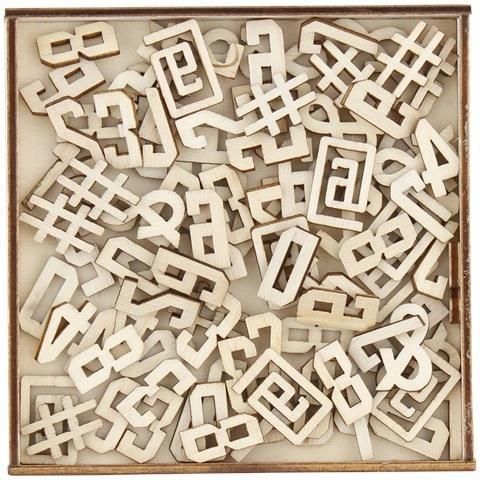 DREWNIANE CYFRY I ZNAKI PUDEŁKO DECOUPAGE 104 SZT. Pilica