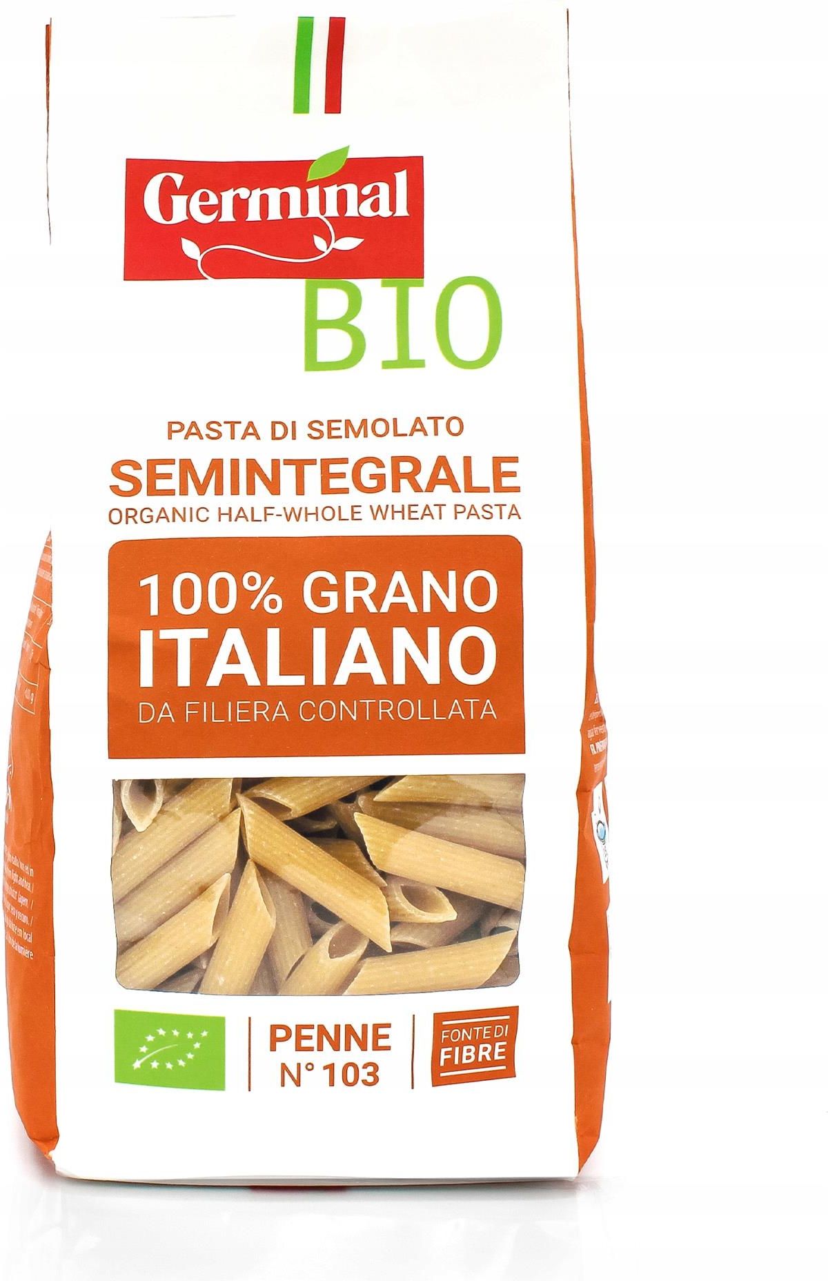 ORGANICZNY MAKARON PÓŁPEŁNY PENNE BIO 500G Skład: *pół-pełnoziarnista mąka pszenna durum (semolina) *=organiczne. Może zawierać soję, gorczycę, jaja Minimalna data ważności: 27/06/2027 GerminalBio jest Włoskim producentem organicznych, zdrowych i funkcjonalnych ciastek i słodyczy oraz makaronów, płatków śniadaniowych oraz przetworów owocowych i warzywnych.. Wykorzystuje wyłącznie naturalne surowce, nie stosuje barwników, konserwantów, tłuszczów uwodornionych i GMO. Germinal to firma z ponad 40 letnią tradycją, która rośnie z roku na rok dzięki dogłębnym badaniom nad surowcami i ich właściwościami odżywczymi. W ofercie znajdą Państwo różne linie produktów, dedykowane także dla osób cierpiących na wszelkiego rodzaju nietolerancje, alergie czy też dla konsumentów prowadzących określony tryb życia.