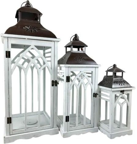 LATARNIA LAMPION DREWNIANY ŚWIECZNIK LATARENKA ZESTAW 3 SZTUK Candela - Kolekcja lampionów, które swoją formą podkreślają charakter stylowego wnętrza. A także dodadzą uroku chwilom spędzonym w ogrodzie. Kolor: biel, brązowyMateriał: drewno szkło MODEL: 23AW0104 WYMIARY DUŻEJ LATARNI:(wysokość x …