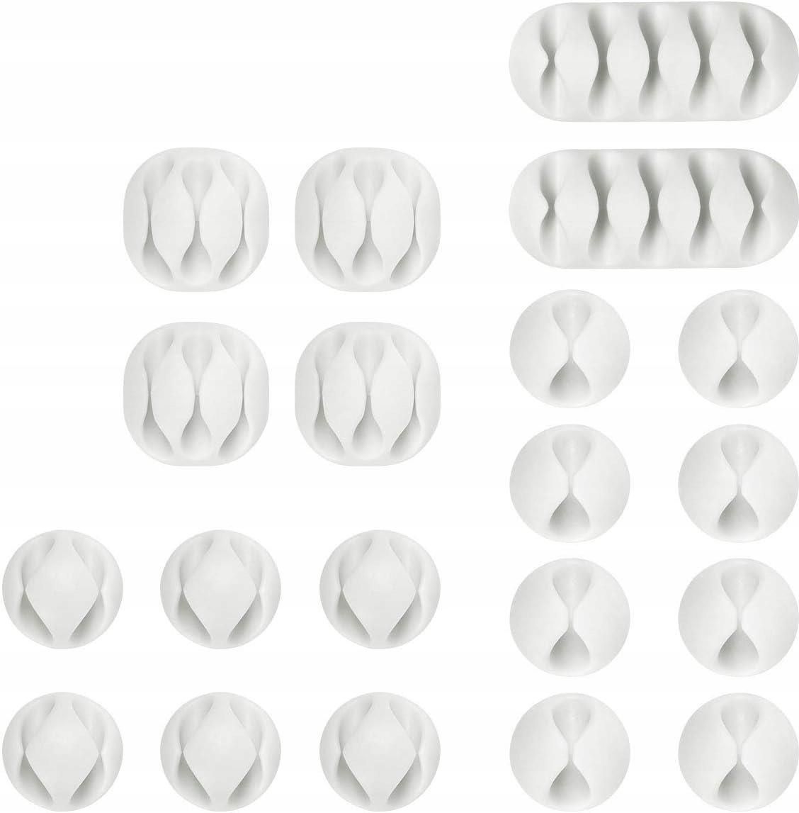 Komplet 20 sztuk różnego rodzaju uchwytów biurkowych do organizacji kabli na biurku. Uchwyty wyposażone są w mocną taśmę 3M, pozwalają na utrzymanie porządku w gąszczu przewodów w miejscu pracy. Kolor biały. 754909107420.0