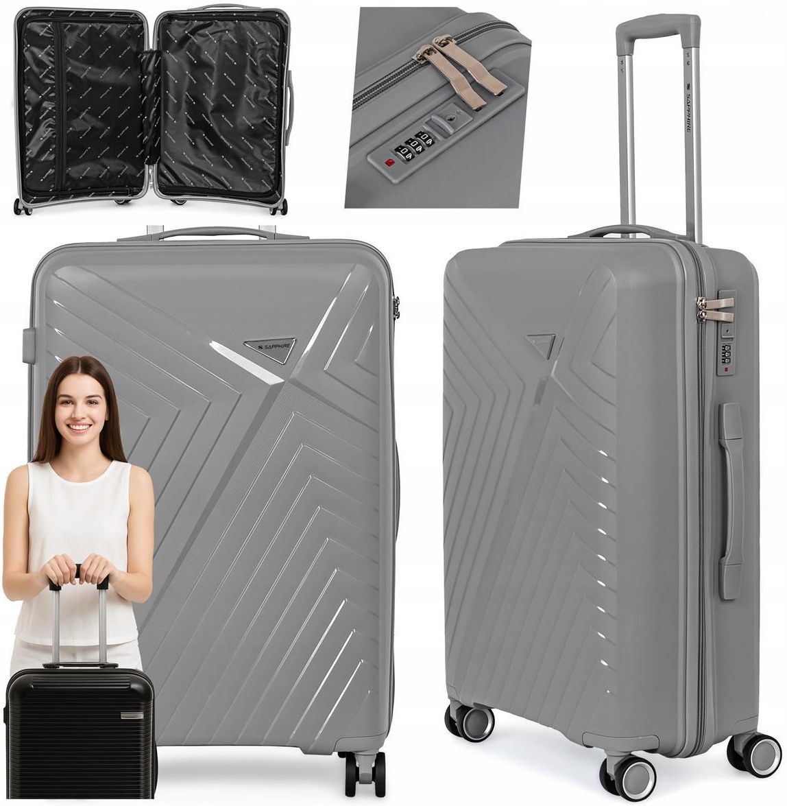 Sapphire Walizka na kółkach twarda ST-3030P szara - duża L Pilica