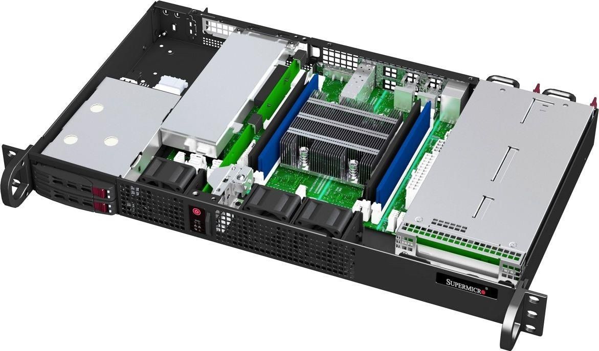 Mini 1U Chassis 300W Redundant High-efficiency Power Supply with Gold Level Certified Rear I/O Ports Support 2x 2.5" Hotswappable HDD/SSD + 1 Low-Profile PCIe Card OR 1x 2.5" Internal Drive Bay + 1 Full-Height, Half-Length PCIe Card OR 4x 2.5" Internal Drive Bay + 1 Low-Profile PCIe Card OR 1x 3.5" Internal Drive Bay only when using Mini-ITX MB Support Intrusion Switch Feature Optional Thermal Sensor Feature 10.Power Switch, Reset Button 6x LED Indicators