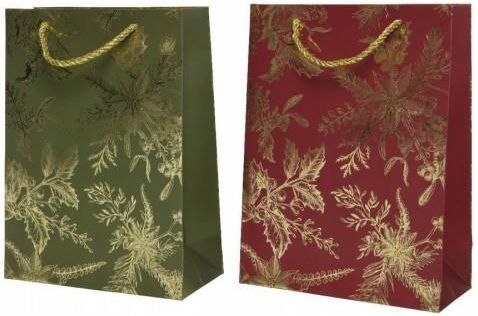 Parametry: Długość: 42 cm Szerokość: 30 cm Głębokość: 12 cm Kolor: zielony, czerwony Zastosowanie: do pakowania prezentów Cena dotyczy 1 sztuki