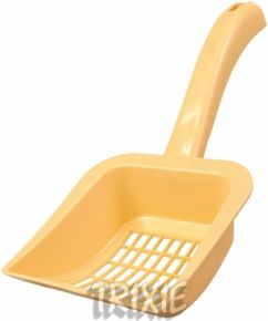 Trixie Łopatka do żwirku L do kuwety TX-40472 Plastikowa łopatka do żwirku lub karmy Łopatka duża, wytrzymała Wykonana z plastiku Kolce od spodu łopatki ułatwiają sprzątanie Łopatka służy do usuwania nieczystości z kocich kuwet Posiada prostokątne otwory Przeznaczona do żwirku zbrylającego się …