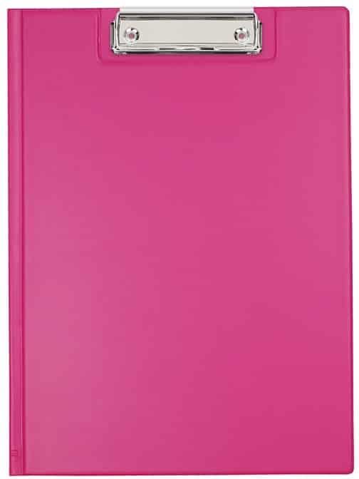 kolorowa folia PVC środek usztywniony tekturą sprężysty mechanizm zaciskowy służący do przytrzymywania kartek kieszeń na wewnętrznej stronie okładki i uchwyt na długopis teczka zamykana format A4