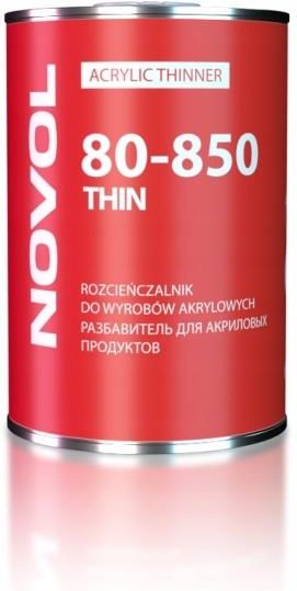 NOVOL N THIN 80-850 ROZCIEŃCZALNIK DO WYROBÓW AKRYLOWYCH POJEMNOŚĆ 1L Rozcieńczalnik dedykowany do podkładów akrylowych i lakieru bezbarwnego linii NOVOL