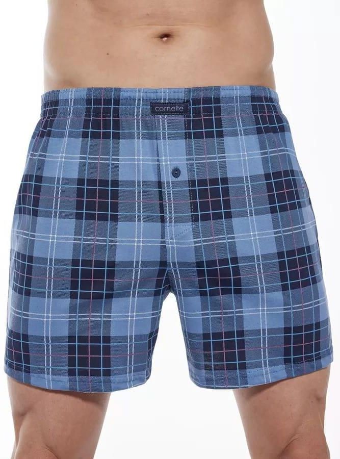 Bokserki męskie o luźnym kroju wykonane z wysokiej jakości bawełny, zapinane na guzik. W pasie wygodna guma w tunelu. Wzór w klasyczna kratkę. Skład: 100% bawełna