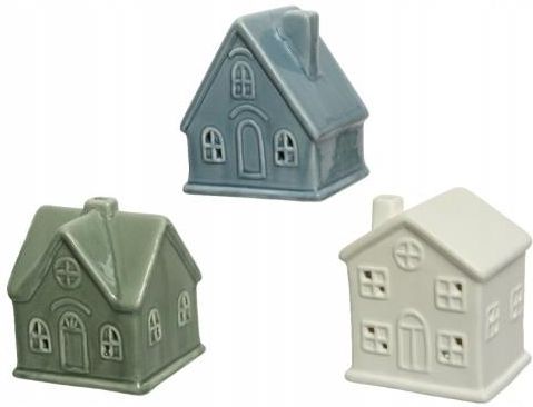 Parametry: ✔️Wymiary: 10 x 8,5 x 7,5 cm ✔️Stosowanie: Uniwersalne ✔️Materiał: Porcelana ✔️Kolor: Kremowy, niebieski, zielony ✔️Zastosowanie: Dekoracja świąteczna ✔️Wzór: Domek ✔️Oferta dotyczy 1 sztuki Produkt występuje w kilku kolorach. W uwagach do zamówienia proszę wpisać kolor, inaczej zostanie wysłany losowy.