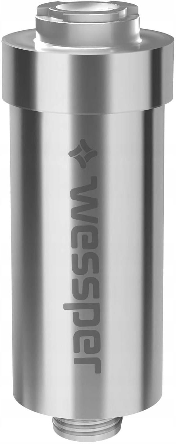 Filtr wody prysznicowy Wessper AquaShower Silver Filtr prysznicowy Wessper AquaShower zawiera złoża cynkowo-miedziowe KDF, które zdecydowanie ograniczają ilość metali ciężkich i chloru w wodzie. Ponadto filtr zatrzymuje bakterie i grzybnie, gromadzące się w instalacji wodociągowej. Jest polecany przy alergiach i atopowym zapaleniu skóry, ponieważ niweluje działanie wysuszających soli wapnia i magnezu. Zmniejsza suchość skóry i uczucie jej napięcia. Ogranicza łamliwość włosów i pozwala zachować ich blask. Filtr Wessper AquaShower Silver ma pozytywne działanie na skórę dorosłych, dzieci oraz niemowląt. ✅ Zapobiega osadzaniu się kamienia na kafelkach i armaturze. ✅ Jest łatwy w montażu i nie wymaga używania narzędzi. ✅ Filtr polecamy szczególnie dla gospodarstw przyłączonych do miejskiej sieci wodociągowej. Dlaczego warto stosować filtry prysznicowe? Filtry prysznicowe polecane są szczególnie dla alergików. W tym wypadku codzienna pielęgnacja wymaga wyjątkowo czystej wody; filtr niweluje szkodliwe i wysuszające związki, przez co skóra zachowuje naturalną florę bakteryjną; Wessper AquaShower wspiera chorych w leczeniu AZS (atopowe zapalenie skóry); nasz filtr zmniejsza suchość skóry i uczucie jej napięcia. W pielęgnacji niemowląt i dzieci redukuje alergie skórne, zmniejsza podrażnienia; dba o skuteczne nawilżenie skóry; wspiera prawidłowe i skuteczne działanie dedykowanych kosmetyków. Jakie są dodatkowe zalety korzystania z filtru prysznicowego Wessper AquaShower? Zmniejsza łamliwość włosów i pozwala dłużej zachować ich blask, szczególnie w przypadku włosów farbowanych; zwiększa wydajność kosmetyków; skóra staje się nieco gładsza i miększa; wspomaga walkę z łupieżem; przyśpieszają terapię antytrądzikową, dzięki związkom neutralizującym bakterie; zapobiega osadzaniu się kamienia na armaturze i kafelkach. Łatwy w montażu i nie wymaga narzędzi Filtr można zamontować na dwa sposoby: Między baterią a wężem prysznicowym. Między wężem prysznicowym, a słuchawką lub deszczownicą. ▶ Filtr wystarczy dokręcić ręcznie (bez użycia narzędzi). Zestaw zawiera wszystkie potrzebne elementy. ▶ Po zamontowaniu filtra, i przed jego pierwszym użyciem, wystarczy włączyć dopływ wody, przepłukać filtr ciepłą wodą, następnie 2 minuty zimną wodą. Filtr należy wymieniać średnio co 6 miesięcy lub 5000 litrów użytej wody. Filtr prysznicowy Wessper AquaShower Silver z KDF Filtry prysznicowe Wessper są małe gabarytowo, ale jednocześnie są funkcjonalne i ekologiczne. Ich działanie opiera się na wykorzystaniu właściwości stopu KDF (złoża cynkowo-miedziowego). Poprzez swoją uniwersalność, pasują do wszystkich rodzajów słuchawek i węży prysznicowych. Montaż jest bardzo intuicyjny, nie wymaga dodatkowych narzędzi. To prosty sposób, żeby zadbać o prawidłową kondycję skóry oraz przedłużyć eksploatację armatury łazienkowej. Zakres temperatury wody: od 2 do 45 st. C. ▶ Zastosowane przyłącze: 1/2 cala (standardowe) Filtr wyprodukowany w Polsce.