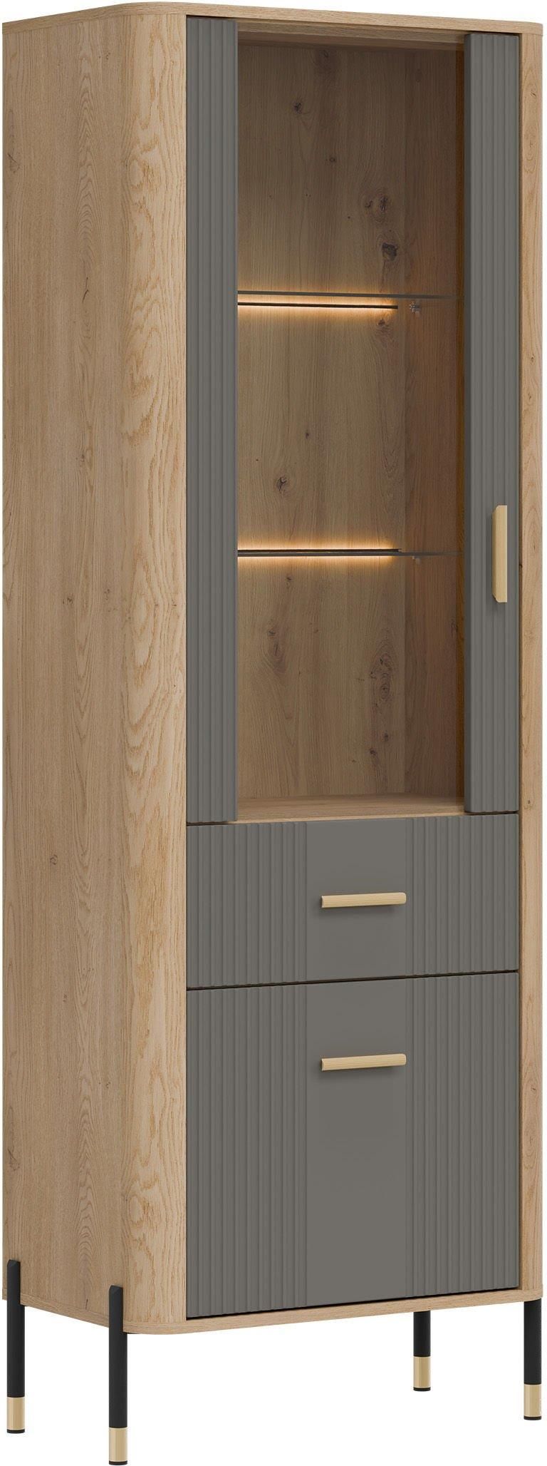 Liveo Witryna Lp Dante Dt13 2D1S Dąb Cremona Torro / Szary Mat Złoty Uchwyt 194Cm Pińczów