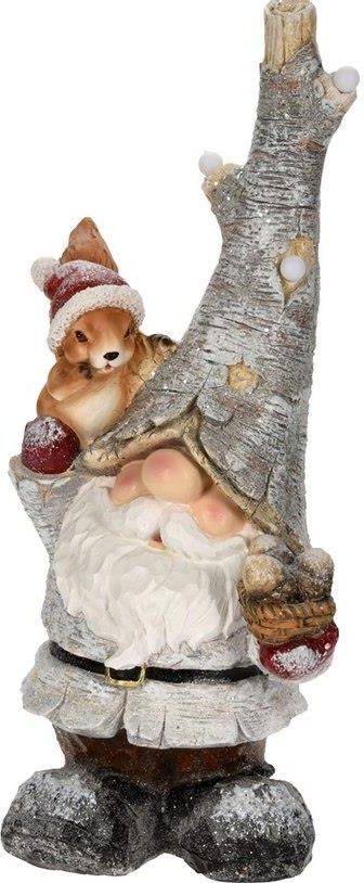 Skrzat krasnal z wiewiórką LED figurka świąteczna z brokatem 60cm Pińczów