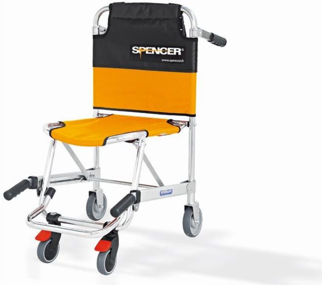 Spencer 425 to krzesło transportowe służące do ewakuacji i transportu pacjenta z miejsca akcji ratowniczej do karetki pogotowialub do innego urządzenia przeznaczonego do transportu na pojeździe. Specyfikacja: Łatwe do czyszczenia arkusze PVC 2 tylne składane uchwyty zmniejszające obciążenie i ułatwiające podnoszenie w każdej sytuacji Teleskopowe uchwyty przednie ułatwiające przenoszenie Możliwość złożenia w celu zaoszczędzenia miejsca Mocna i lekka rama Składany podnóżek zwiększający stabilność i komfort pacjenta Przednie koła z hamulcem do obracania się i osi Dane techniczne Długość otwarta z zamkniętymi uchwytami 700 ± 10 mm Długość otwarta z otwartymi uchwytami 1150 ± 10 mm Szerokość 490 ± 10 mm Wysokość po otwarciu 900 ± 10 mm Grubość złożona 210 ± 10 mm Koła tylne ø125 mm Koła przednie ø100 mm Materiały Stal/Al/PU/PVC Waga 11 kg ± 0,3 Ładowność 150 kg