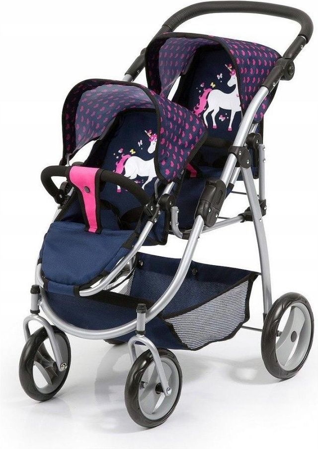 Bliźniaczy wózek z jednorożcem Wózek dla lalek to idealny towarzysz zabaw dla małych dzieci! Ten uroczy i funkcjonalny wózek zapewni godziny przyjemności i twórczej zabawy dla każdej małej opiekunki lalek. Wózek dla lalek został starannie wykonany z wysokiej jakości materiałów, które gwarantują trwałość i bezpieczeństwo podczas użytkowania. Ten nowoczesny wózek dla bliźniaków jest odpowiedni dla lalek o wzroście do 46 cm. Dzięki uchwytowi, którego wysokość można regulować w zakresie od 42 cm do 81 cm, można go optymalnie dopasować do odpowiedniego rozmiaru dziecka. Wózek można łatwo złożyć, przez co jest łatwy w transporcie i wygodny w przechowywaniu. Posiada regulowane daszki przeciwsłoneczne dla obu siedzeń. Dzięki koszykowi na zakupy, wszystko, co jest potrzebne na wycieczkę z lalkami, można wygodnie schować. Miękkie, płynnie pracujące koła są idealne do wszystkich powierzchni. Cechy produktu: odpowiedni dla lalek do 46cm regulowany ok. 42-81 cm Kółka obrotowe z przodu składany koszyk na zakupy Korzyści z użytkowania wózka: rozbudza aktywność umysłową i emocjonalną dziecka rozwija wyobraźnie wyrabia umiejętność przystosowania się do otaczającego świata jest bezpieczny – spełnia normy zabawek dla małych dzieci Wymiary: 63 x 46 x 73 cm Zapewnij swojemu dziecku niezapomniane chwile zabawy i wyobraźni z tym uroczym wózkiem dla lalek. Spraw, by Twoje dziecko poczuło się jak prawdziwa opiekunka lalek!