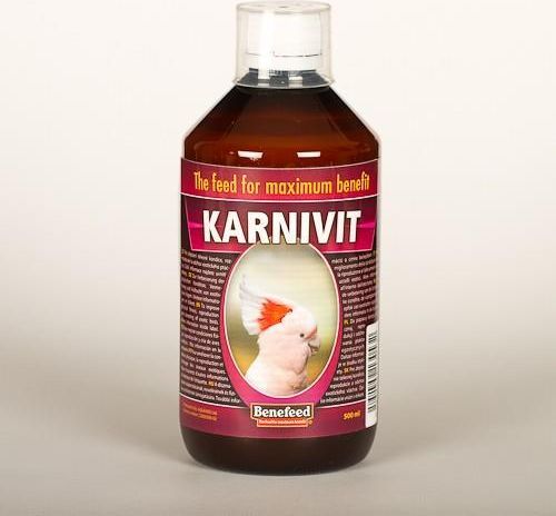 Benefeed KARNIVIT 500ml = do poprawy kondycji fizycznej, reprodukcji i odchowania ptaków egzotycznych KARNIVIT zawiera specyficzny kompleks substancji poprawiających reprodukcję ptaków egzotycznych w hodowli. Wszystkie substancje aktywne są w formie, która zapewnia maksymalną skuteczność. u samców wspomaga spermatogenezę, zwiększając jakość ejakulatu, zwłaszcza ilość plemników i ich ruchliwość u samic dochodzi do lepszego zapłodnienia i następnie także do lepszego rozwoju płodu. Pisklęta dzięki temu preparatowi rodzą się z większą masą, odpornością i witalnością, co pozytywnie wpływa na ich stan zdrowia i rozwój w dalszym okresie ich życia można też stosować w przypadkach, gdy pożądane jest zwiększenie przyrostu masy mięśni szkieletowych, na przykład w przypadku zwierząt użytkowych lub zwierząt do celów wystawowych lub sportowych Wysoką skuteczność preparatu zapewnia specjalna technologia produkcji, wykorzystująca otoczkowanie do ochrony substancji aktywnych przed degradacją w żołądku i przewodzie trawiennym - osłona jest stopniowo rozpuszczana, aż dochodzi do całkowitego uwolnienia substancji czynnej w organizmie w stanie jej najwyższej skuteczności. Znaczącą korzyścią wynikającą z zastosowania tej technologii jest fakt, że w rozworze powstaje specjalna nośna i izolacyjna gąbczasta mikrostruktura, która zapobiega przyleganiu witamin do ścian instalacji z wodą do pojenia oraz w poidłach. Pozwala to wyeliminować groźbę namnożenia się niepożądanych organizmów na tych pozostałościach. Skład: L-karnityna, witaminy, substancje naturalne, ekstrakt z ziół, uzdatniona woda pitna. Przechowywanie: przechowywać w suchym i ciemnym miejscu w oryginalnie zamkniętych opakowaniach. Po otwarciu należy stopniowo zużyć, wyrób nie nadaje się do długotrwałego przechowywania. Lekki osad pochodzi z zawartych w produkcie substancji naturalnych i nie stanowi wady wyrobu. Instrukcja stosowania: podaje się codziennie w ilości 5-10 ml na 1 litr wody do pojenia, okres podawania zależy od potrzeb. Preparat można podawać stale w celu zwiększenia przyrostu masy mięśni szkieletowych. Preparat można łączyć i podawać jednocześnie z jakimkolwiek wyrobem marki BENEFEED®. Zawsze czytaj etykietę i informacje o produkcie przed użyciem!