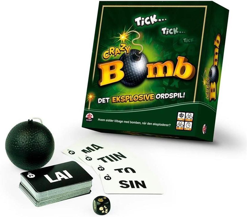Kto pozbywa się bomby przed jej wybuchem? Wymyśl słowo zawierające litery z karty. Jeśli odpowiedź jest poprawna, przekaż bombę następnemu graczowi. Przegrywa ten, kto zostanie z bombą w ręku w momencie jej wybuchu. Dla 2-12 graczy. Od 12 lat.