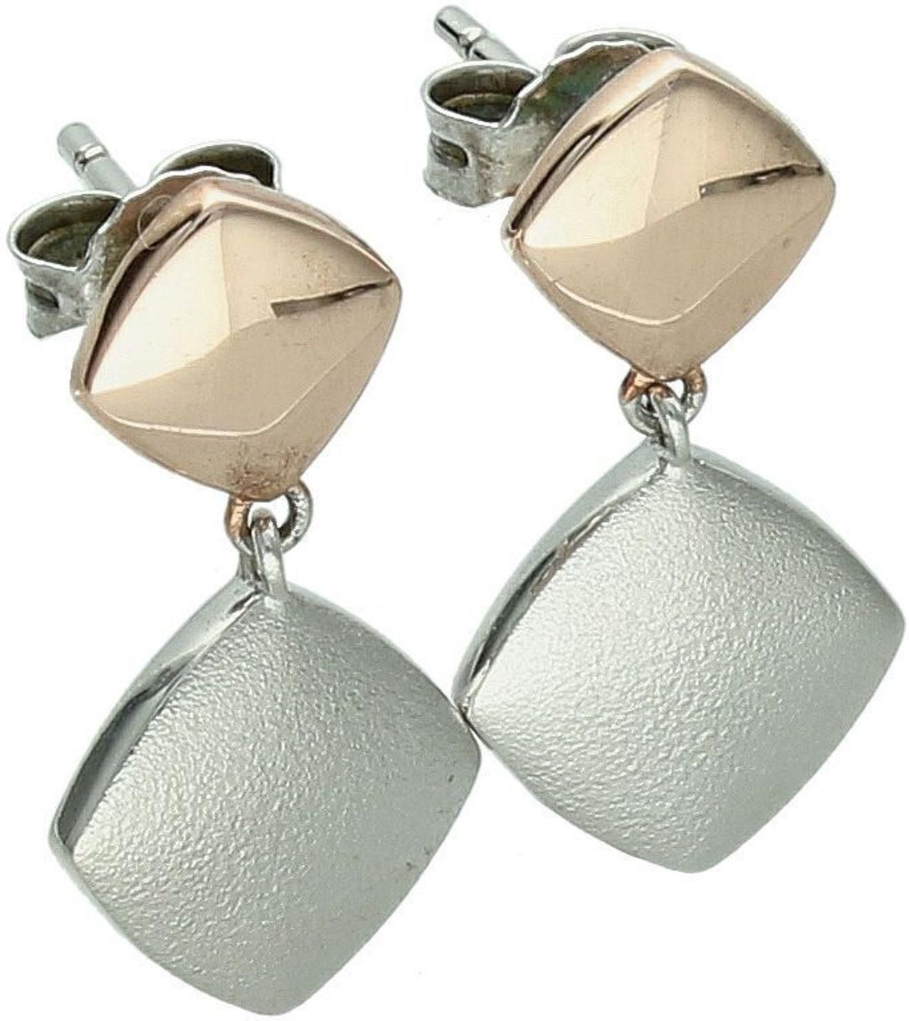 Diament Kolczyki Srebrne e 925 Wiszące z Kwadracikami – LSKK0002 | Pozłacane i Satynowe Detale Piotrków Kujawski