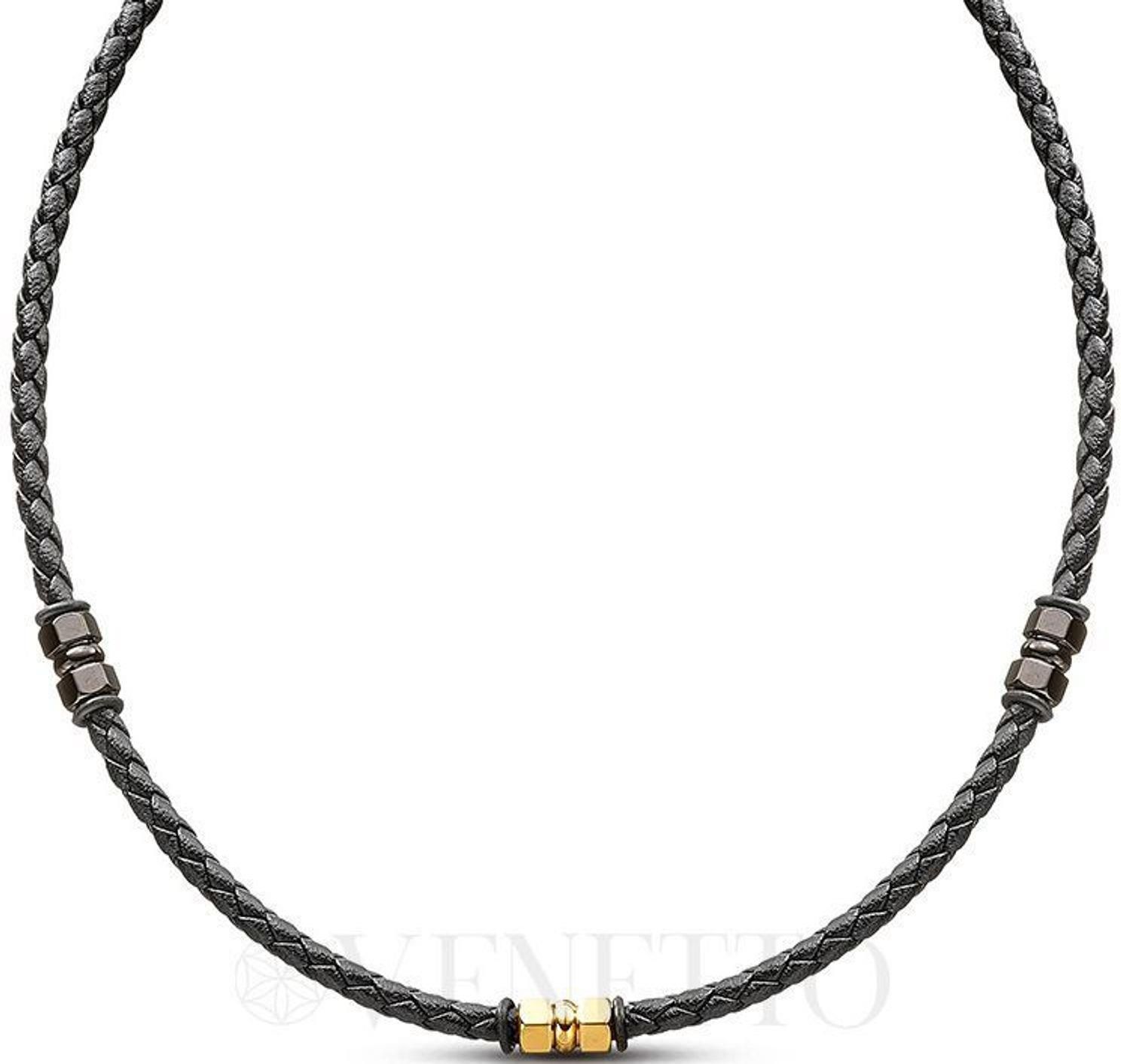 Diament Naszyjnik męski rzemyk z pozłacanym elementem ze stali szlachetnej DIA-NSZ-S8693952-STAL – 47 cm + 3 cm karabińczyk Piotrków Kujawski