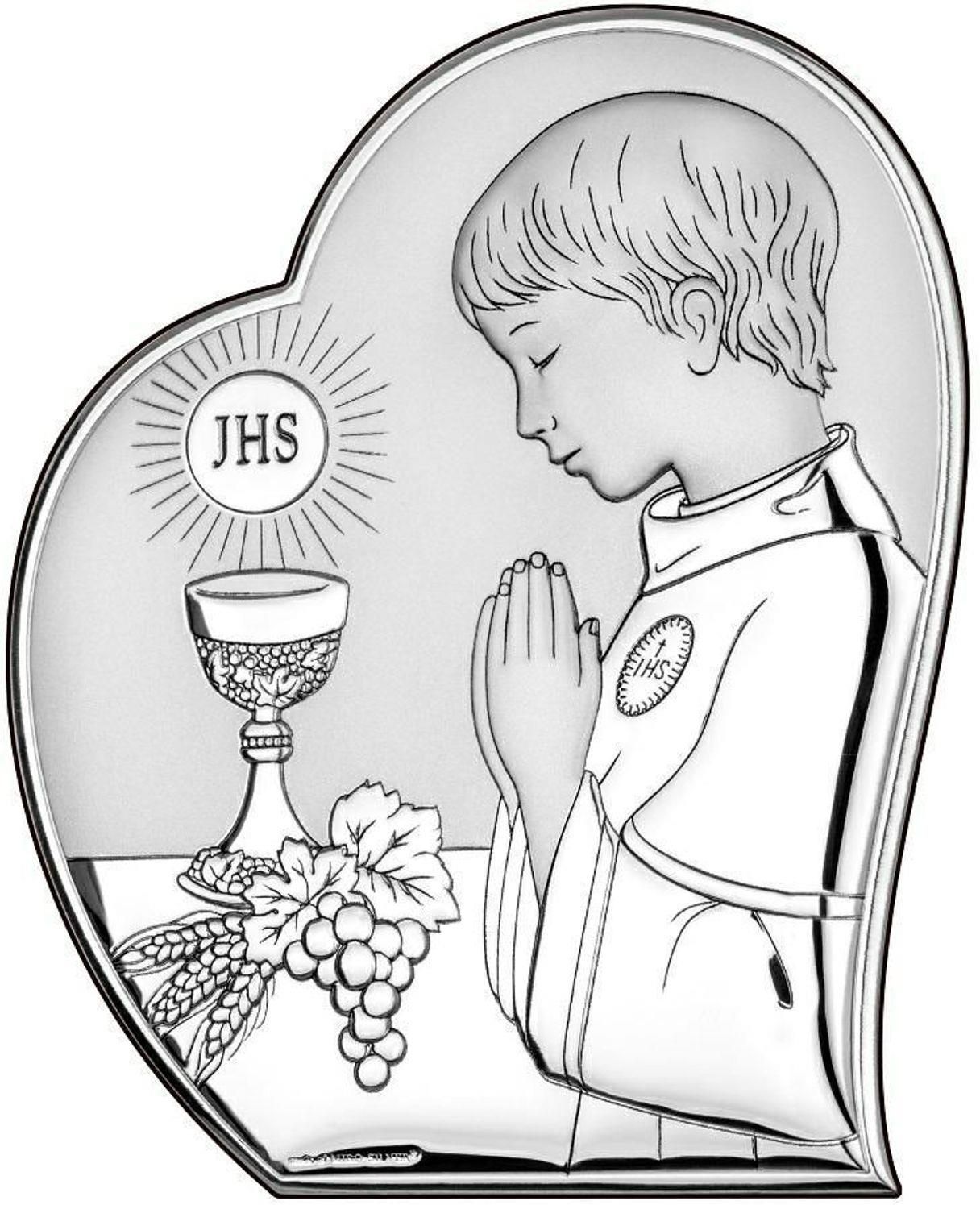 Obrazek pokryty srebrem – Pamiątka Pierwszej Komunii Świętej dla chłopca 6852/2O Elegancki obrazek z wizerunkiem chłopca pochylonego nad kielichem to wyjątkowa pamiątka Pierwszej Komunii Świętej. Przypomina o duchowym wymiarze sakramentu i pięknych chwilach tego ważnego dnia. Wykonany z wysokiej …