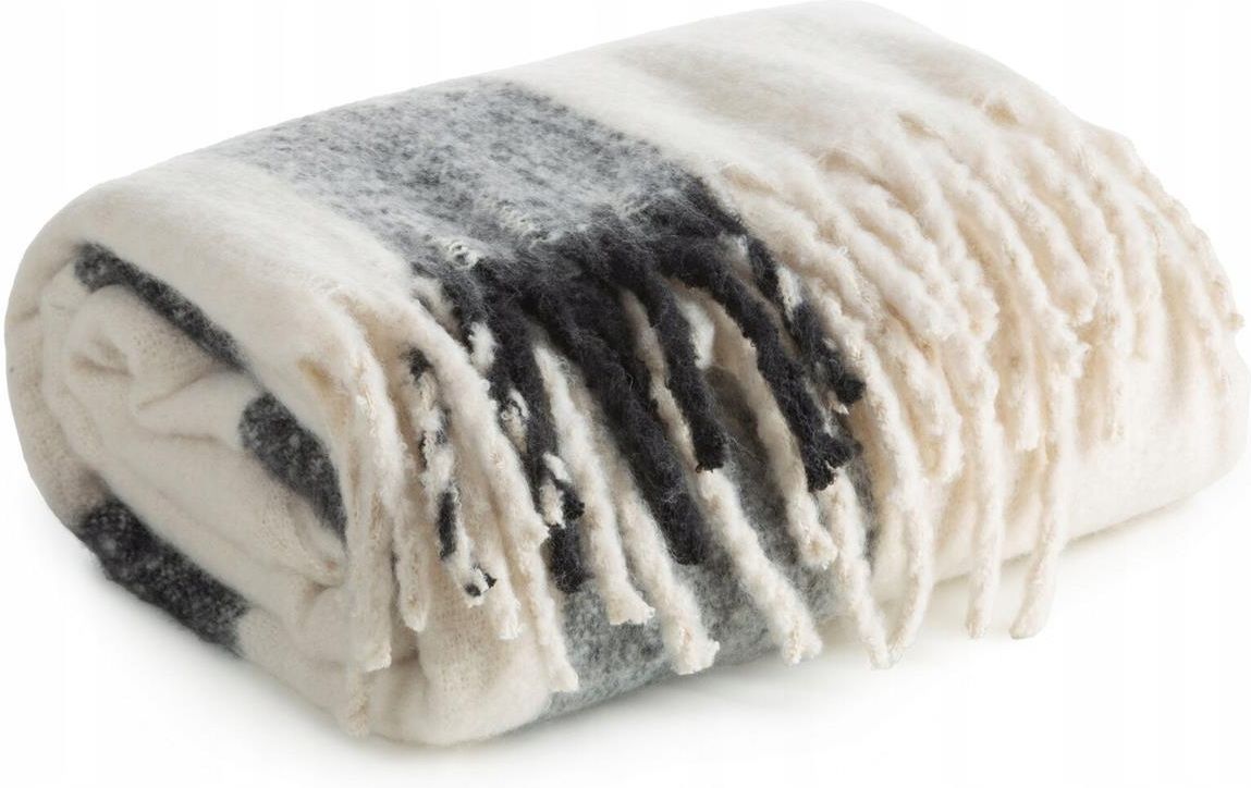 Eurofirany Koc Narzuta Moher 130X170 Czarny Kremowy W Kratę Z Frędzlami Piotrków Kujawski