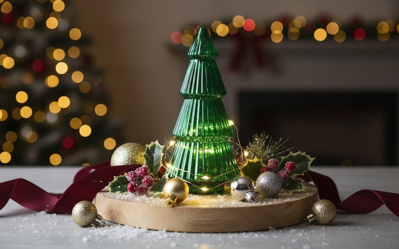 Piękna szklana choinka z efektem iryzacji. Znakomicie się prezentuje. Choinka wykonana została ze szkła kolorowego bardzo precyzyjnie, z dbałością o szczegóły. Udekoruje stół, meble czy witryny, ale też inne domowe zakamarki dodając im uroku i świątecznej atmosfery. Figurka jest dość lekka, ale bardzo stabilna. Od spodu posiada podkładkę, która zapobiega niechcianemu przesuwaniu się i zapobiega porysowaniu powierzchni. Świąteczne drzewko jest symbolem Bożego Narodzenia. Podczas tych magicznych chwil nie powinno go zabraknąć w naszym domu. Szklana choinka świetnie odbija refleksy światła. W towarzystwie lampionów lub świątecznych świec na stołach stworzy nie lada kompozycję, która zachwyci i oczaruje wszystkich domowników. Każda aranżacja z użyciem takich ozdób to strzał w dziesiątkę. Choinka to dekoracja sama w sobie. Świetnie zaprezentuje się w otoczeniu innych świątecznych przedmiotów, jak również solo. Cechy produktu Materiał: szkło Kolor: odcienie zieleni Figurka dostępna jest w różnych wariantach do kupienia osobno na innych aukcjach. Skompletuj wszystkie!Stwórz MEGA świąteczny zestaw, który ucieszy Ciebie i Twoich bliskich. Zdjęcia aranżacyjne mają charakter poglądowy. Prezentowana aranżacja może zawierać elementy dekoracyjne niewchodzące w skład zestawu. Szczegóły dotyczące zawartości znajdują się w opisie produktu.