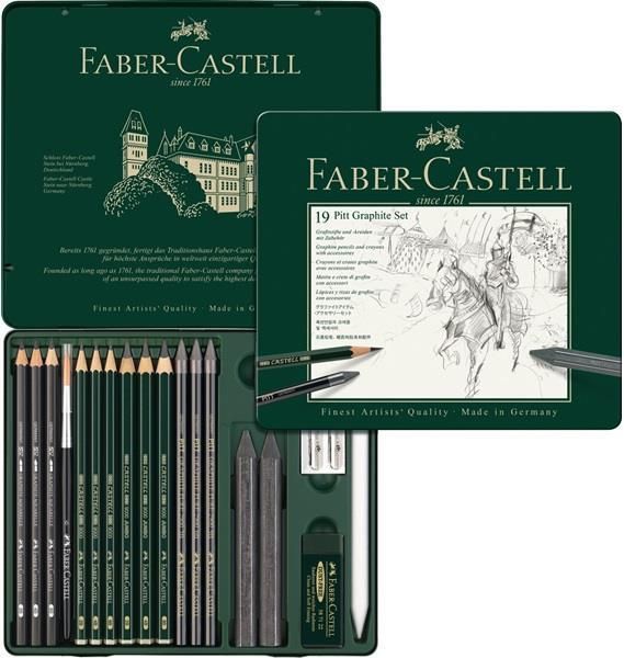 Ten zestaw z serii PITT Graphic firmy Faber-Castell zapewnia wszystkim kreatywnym artystom szeroką gamę ołówków i kredek o różnych stopniach twardości do szkicowania, projektowania graficznego i cieniowania. "Zielony ołówek Faber", o którym z aprobatą wspominali już Van Gogh i Goethe, stał się częścią codziennego życia. Ołówki PITT Graphite Pure są idealne do tworzenia kontrastów i cieniowania rozległych obszarów. 16 różnych stopni twardości, od delikatnej szarości po głęboką grafitową czerń, oferuje artystom szeroki wachlarz możliwości. Kredki te oferują niezrównane możliwości spontanicznej ekspresji, tworząc różne efekty w zależności od zastosowanego nacisku i stopnia twardości. Kredki grafitowe PITT są idealnym i bardzo ekonomicznym medium do pracy nad bardzo dużymi szkicami i obszarami. Profesjonalny zestaw w metalowym etui. Starannie wyselekcjonowana gama ołówków Castell 9000, Castell 9000 Jumbo i Graphite Aquarelle o twardości ołowiu 2B i 8B. Ołówki Pitt Graphite Pure o twardości 3B i 6B. Kredki Pitt Graphite o twardości 6B i akcesoria. Idealne do użytku w podróży. 19 ołówków w metalowej puszce.