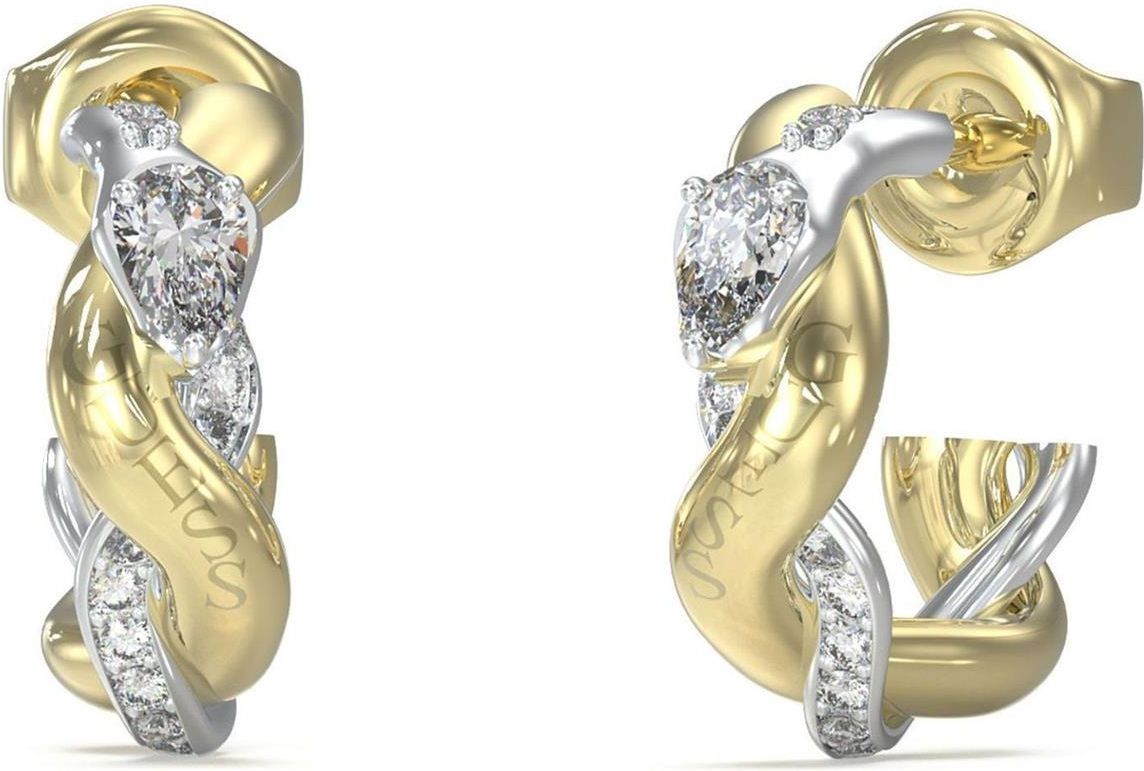 Kolczyki koła Guess z cyrkoniami Twist JUBE05065JWYGRHT/U. Kolczyki GUESS kółka JUBE05065JWYGRHT-U. Damskie kolczyki Guess JUBE05065JWYGRHT-U to błyszczące dodatki, które podkreślają piękno każdej użytkowniczki. Wykonane ze stali szlachetnej, ozdobione cyrkonią. Kolczyki w formie małych kółeczek, dodają elegancji na co dzień. Stalowe kolczyki wykonane z najwyższej jakości stali w kolorze złoto-srebrnym w kształcie kółek ozdobione cyrkoniami. Kształt kolczyków jest uniwersalny, ponadczasowy a dzięki swojemu wyjątkowemu wykonaniu nadają się podczas codziennego użytkowania. Kolczyki z zapięciem na sztyft. Wielkość kolczyków : 1,0 cm Ponadczasowy wzór symbolizuje doskonałość oraz kobiecą siłę – stanowiąc jednocześnie definicję harmonii oraz piękna. Dyskretna elegancja w codziennym wydaniu przypadnie do gustu każdej miłośniczce unikatowych dodatków. Uniwersalne kolczyki można skompletować z naszyjnikiem lub bransoletką, aby tworzyć wyjątkowe zestawy - idealne do różnych stylizacji. Idealny pomysł na prezent dla modnej kobiety.