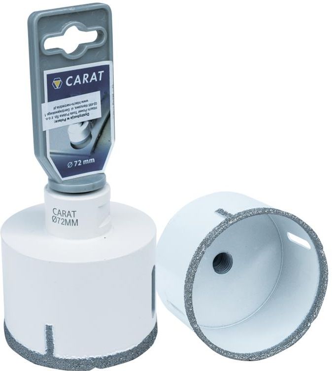 Diamentowe wiertło koronowe, otwornica diamentowa,CARAT 68 mmdo gresu, kamionki szlachetnej, gresu polerowanego (porcellanato).EHS0680706. Kupujesz u oficjalnego dystrybutora Carat/Hikoki. Produkt w 100% ORYGINALNY! Otwornica diamentowa do gresu 68mm M14 CARAT Zestaw zawiera Diamentowe wiertło koronowe 68mm M14 firmy CARAT DANE TECHNICZNE Gwint M14 do mocowania na szlifierkę Wysokość: 40mm Średnica: 68mm CECHY PRODUKTU Wysokiej jakości profesjonalne otwornice diamentowe marki Carat przeznaczone do bardzo twardych materiałów. Pozwala pracować na sucho ze szlifierkami kątowymi. Koronki wiertarskie diamentowe do gresu i kamienia naturalnego gwarantują trwałość i wysoką jakość. Diamentowe wiertła koronowe Carat zostały dostosowane do wiercenia w miękkich i bardzo twardych płytkach podłogowych, np. wykonanych z kamionki szlachetnej, gresu i gresu polerowanego (porcellanato). Koronki diamentowe do gresu Carat osiągają bardzo wysoką wydajność wiercenia nawet w najtrwalszych materiałach, dzięki specjalnie opracowanej technologii i materiałom najwyższej jakości. Przeznaczone do pracy niskimi obrotami na elektronarzędziach akumulatorowych. Są zatem niewrażliwe na zmianę warunków wiercenia, a także niewrażliwe na prędkość obrotową. Koronki diamentowe Carat posiadają wosk dla właściwego nawilżenia podczas prac, dlatego też nie wymagają pracy na mokro. Nowy sposób lutowania powierzchni diamentowej pozwala koronce lepiej znosić trudne warunki pracy. Nasyp diamentowy na wywiniętym brzegu głowicy zapewnia łatwy start i zapobiega „ślizganiu się” wiertła po obrabianym materiale Pracując koronkami wiertarskimi Carat nie ma obaw o uszkodzenie materiału. Pozwala ograniczyć czas i przede wszystkim pieniądze - użytkownicy pracujący nowym rodzajem osprzętu wskazują na wyraźne zmniejszenie tzw. „odpadów”. Ponadto, właściwie użytkowana koronka diamentowa Carat nie pęka – w trakcie wiercenia nie powinna być ustawiona dokładnie w osi. Korpus zbudowany jest z wytrzymałej stali. Ścianki boczne trzymające rdzeń, co zapewnia bezpieczeństwo i wysoka jakość efektów pracy. Koronki diamentowe Carat zostały dostosowane do wiercenia miękkich i bardzo twardych materiałach takich jak np. płytki podłogowe wykonane z kamionki szlachetnej, gresu, gresu polerowanego (porcellanato).Koronki wiertarskie diamentowe Carat zawdzięczają wysokie osiągi związane z ich wydajnością, dzięki specjalnie opracowanej technologii i materiałom najwyższej jakości. Otwornice diamentowe koronowe Carat są niewrażliwe na zmianę warunków wiercenia,a także na prędkość obrotową. W czym tkwi tajemnica? Koronki diamentowe Carat dla właściwego nawilżenia podczas pracy zostały pokryte warstwą wosku. Warstwa wosku powoduje, iż otwornice mogą pracować na sucho i nie wymagają użycia wody. Nowy sposób lutowania powierzchni jaki zastosowano pozwala koronce diamentowej lepiej znosić trudne warunki pracy. Nasyp diamentowy na wywiniętym brzegu głowicy zapewnia łatwy start, a co więcej zapobiega "ślizganiu się" wiertła po obrabianym materiale. Podczas pracy z koronkami Carat nie ma obaw o uszkodzenia obrabianego materiału. Praca z koronkami pozwala ograniczyć czas i przed wszystkim pieniądze - użytkownicy wskazują na zmniejszenie się tzw. "odpadów". Co więcej, właściwie użytkowane koronki Carat nie pękają - należy pamiętać że w trakcie wiercenia głowica nie powinna być ustawiona dokładnie w osi. Korpus koronki wykonano z wytrzymałego rodzaju stali. Firma Carat? Firma Carat słynie na świecie przede wszystkim z dwóch rzeczy: ekstremalnej dbałości o jakość swoich produktów (o tym niech świadczy chociażby kontrola jakości dotycząca każdej, pojedynczej nawet pozycji asortymentu, czy stosowanie jedynie ziarna diamentowego produkcji General Electric).