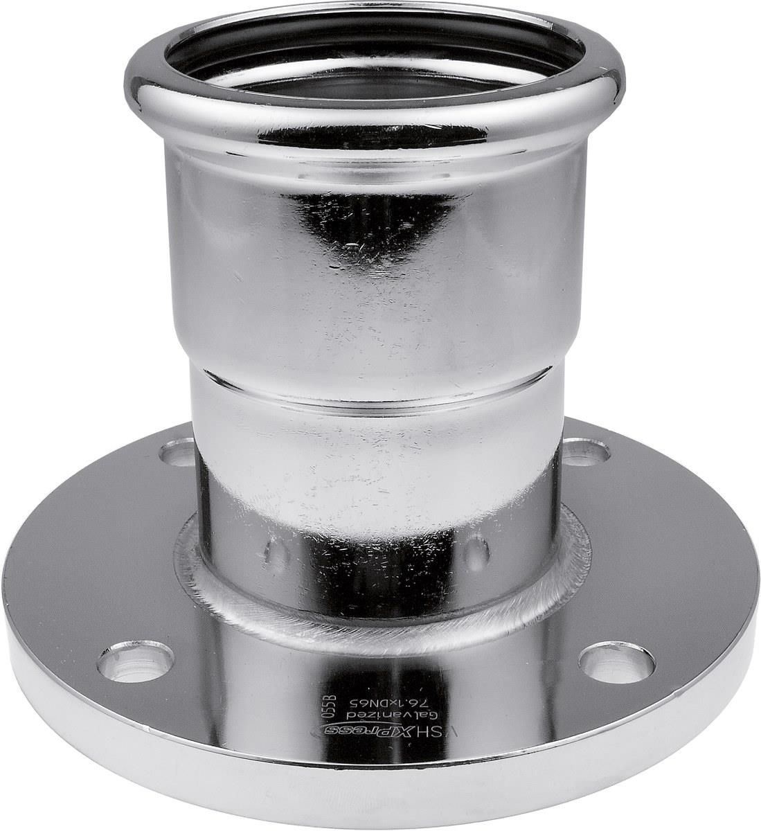 Kołnierz PN16 Steel w zakresie średnic 35 DN32 - 108 DN100 stalowy ocynkowany (Fe/Zn88), grubość warstwy 8-15 µm do połączeń zaprasowywanych z funkcją kontrolowanego przecieku LBP. Posiada uszczelnienie typu O-ring