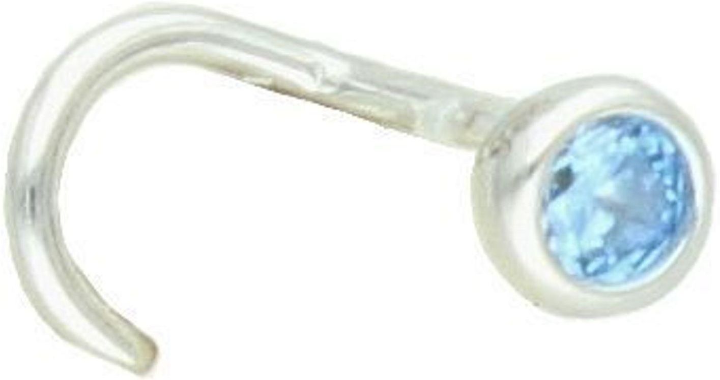 Kolczyk do nosa niebieska cyrkonia JMAN0406AE01. Kolczyk do piercingu nosa wykonany z najwyższej próby srebra 925. Delikatny kolczyk do przekłucia typu Nostril z jedną okrągłą cyrkonią w niebieskim kolorze. Kolczyk ten dzięki swojemu uniwersalnemu, niewielkiemu kształtowi oraz jednej okrągłej cyrkonii będzie idealną biżuterią zdobiącą płatek nosa. Waga: 0,20 gram Wielkość oczka: 3 mm Długość kolczyka: 8 mm