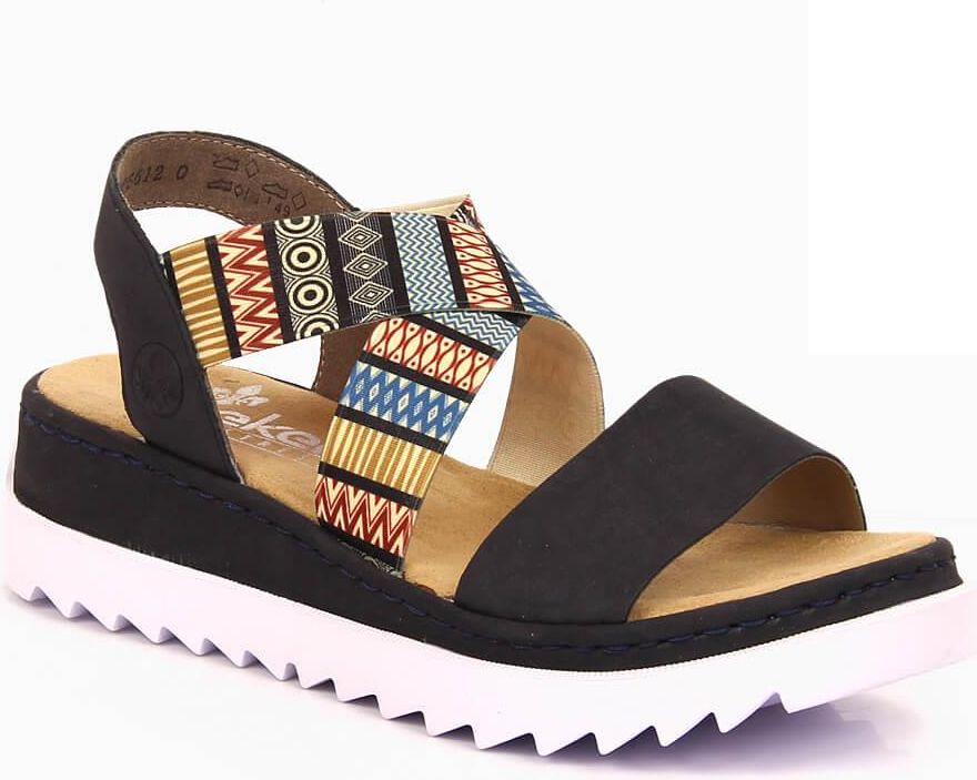Komfortowe sandały damskie na koturnie multikolor Rieker V44G8-14 Piotrków Kujawski