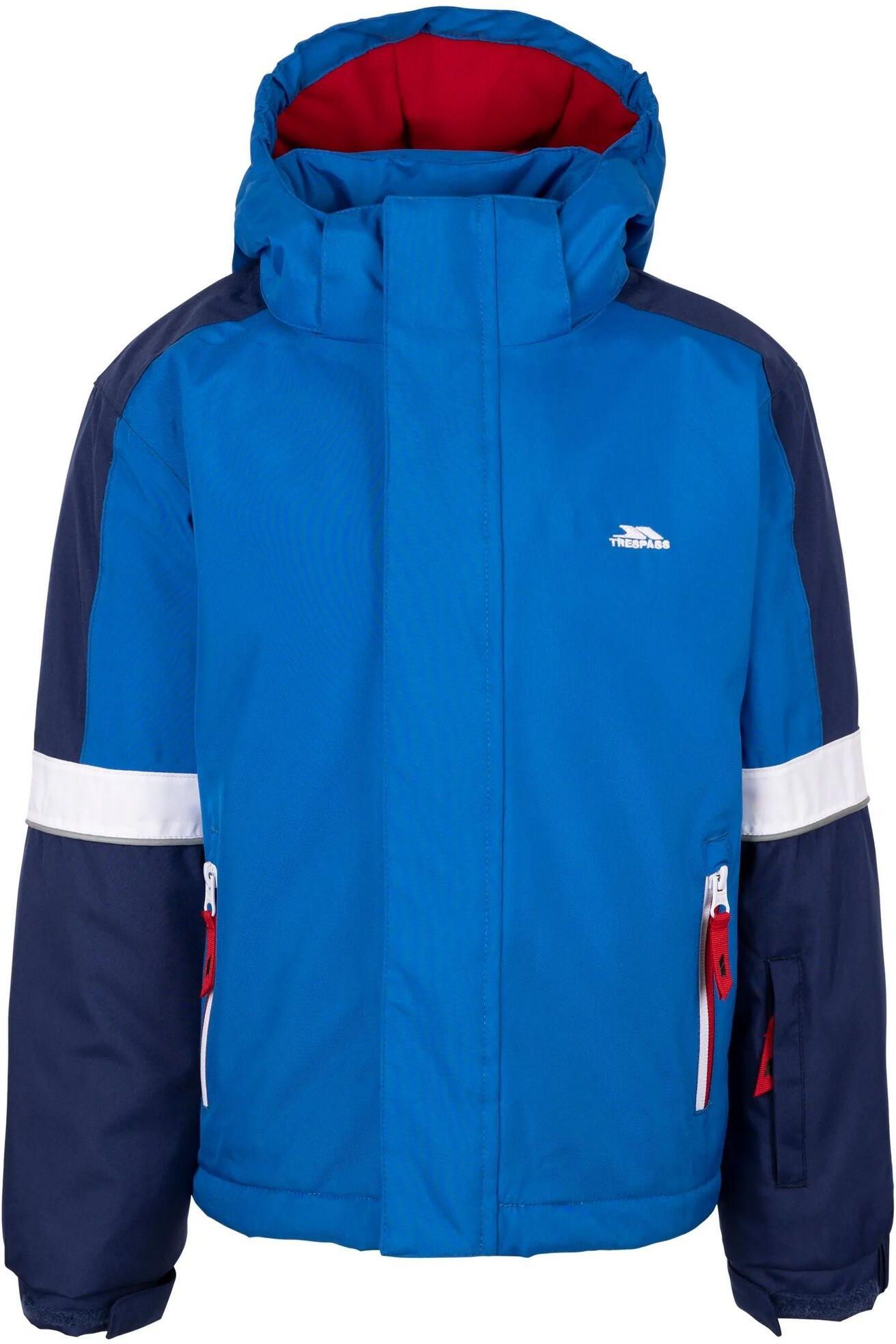 Trespass Kurtka narciarska Kingsley dla chłopców Marka: Trespass 100% poliester. Powłoka: Membrana TPU. Projekt: kontrast, logo. Technologia tkaniny: wodoodporna, wiatroszczelna. Mankiet: elastyczny, zapinany na zatrzask. Dekolt: z kapturem, kołnierz stojący. Wewnętrzna osłona przeciwśnieżna, …