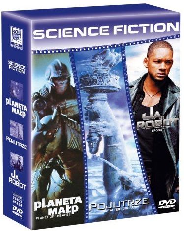 PLANETA MAand#321;PJest rok 2029. Podczas miand#281;dzygalaktycznej misji jeden ze statków, traci kontakt z macierzystand#261; stacjand#261; kosmicznand#261; OBERON i znika z radarów. W czasie poszukiwaand#324; inny statek pilotowany przez kapitana Leo Davidsona (Mark Wahlberg - Boogie Nights, Gniew Oceanu) wpada w pand#281;tland#281; czasu i rozbija siand#281; na poroand#347;niand#281;tej dand#380;ungland#261; planecie trochand#281; przypominajand#261;cej Ziemiand#281;...Trochand#281;, bowiem rzand#261;dzand#261; niand#261; inteligentne maand#322;py, ludzie zaand#347; zostali sprowadzeni do roli niewolników. Schwytany przez maand#322;py Leo ucieka dziand#281;ki pomocy Ari (Helena Bonham Carter - Podziemny krand#261;g, Pokój z widokiem) i wraz z grupand#261; ludzi i zbuntowanych maand#322;p, niezadowolonych z rzand#261;dów despotycznego Thade'a (Tim Roth - Pulp Fiction, Wand#347;ciekand#322;e psy) dand#261;and#380;y do nawiand#261;zania kontaktu ze stacjand#261; OBERON aby jak najszybciej wróciand#263; do domu. W czasie podróand#380;y zmienia jednak zdanie, poznaje lepiej swoich przewodników i dokonuje niezwykand#322;ego odkrycia.Teraz, uzbrojony w nowe informacje Leo staje na czele rebelii przeciwko przewaand#380;ajand#261;cym siand#322;om maand#322;p, która moand#380;e mieand#263; tylko jedno zakoand#324;czenie - wolnoand#347;and#263;, lub caand#322;kowite unicestwienie rodzaju ludzkiego.POJUTRZEW "DNIU NIEPODLEGand#321;Oand#346;CI" Roland Emmerich przedstawiand#322; przeraand#380;ajand#261;cand#261; wizjand#281; zagroand#380;enia dla caand#322;ej Ziemi ze strony Obcych.Teraz, w jego najnowszym, naand#322;adowanym niesamowitymi efektami specjalnymi filmie "POJUTRZE" wrogiem jest jeszcze bardziej niszczycielska siand#322;a - sama natura!Raptowna zmiana klimatu niesie ze soband#261; katastrofalne skutki dla caand#322;ej naszej planety.Klimatolog Jack Hall (Dennis Quaid) przewiduje nadejand#347;cie nowej epoki lodowcowej! Nie spodziewa siand#281; jednak, and#380;e moand#380;e siand#281; to staand#263; za jego and#380;ycia.Nagand#322;e i gwaand#322;towne zwroty globalnej pogody siejand#261; spustoszenie w dosand#322;ownie kaand#380;dym zakand#261;tku Ziemi; powodujand#261; powodzie, gradobicia, tornada i temperatury o monstrualnej, nigdy do tej pory nie notowanej skali.Chcand#261;c uratowaand#263; miliony istnieand#324;, w tym takand#380;e swojego syna Sama (Jack Gyllenhal) Jack musi band#322;yskawicznie przekonaand#263; Prezydenta Stanów Zjednoczonych o realnym zagroand#380;eniu i koniecznoand#347;ci ewakuacji kraju. A czas nieuchronnie ucieka...JA, ROBOTW 2035 roku oku roboty staand#322;y siand#281; integralnand#261; czand#281;and#347;ciand#261; codziennego and#380;ycia wszystkich ludzi.Kiedy ginie genialny naukowiec pracujand#261;cy w wielkiej korporacji U.S. Robotics, chicagowski detektyw Del Spooner (Will Smith) podejmuje and#347;ledztwo. Z pomocand#261; doktor Susan Calvin (Bridget Moynahan) - specjalistki od psychologii robotów, detektyw odkrywa, and#380;e odpowiedzialnym za and#347;mierand#263; naukowca moand#380;e byand#263; wand#322;aand#347;nie robot. Im bardziej Spooner zbliand#380;a siand#281; do prawdy, tym bardziej jego and#380;ycie znajduje siand#281; w niebezpieczeand#324;stwie.Czas ucieka, a zagroand#380;enie staje siand#281; coraz wiand#281;ksze... zagroand#380;enie dla egzystencji caand#322;ego rodzaju ludzkiego.Niezwykand#322;e widowisko, wizja przyszand#322;oand#347;ci wykreowana za sprawand#261; spektakularnych efektów specjalnych przechodzi najand#347;mielsze wyobraand#380;enie.