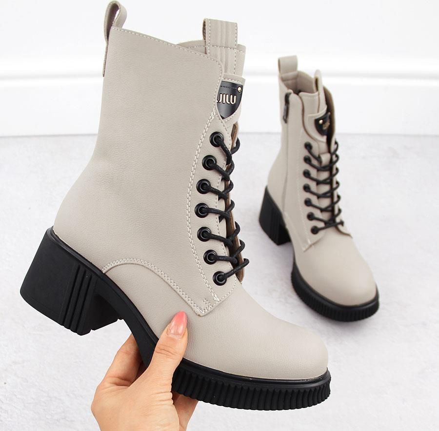 Skórzane botki damskie na klocku beżowe Vinceza 66671 Piotrków Kujawski