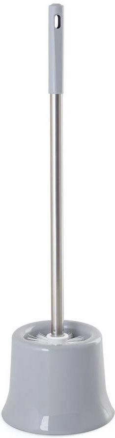 Szczotka toaletowa z pojemnikiem wykonanym z tworzywa sztucznego w kolorze szarym stanowi praktyczne i estetyczne rozwiązanie do utrzymania czystości w łazience. Lekki i gładki pojemnik jest łatwy w czyszczeniu, co zapewnia wygodę użytkowania. Główka czyszcząca szczotki została wykonana z gęstego, plastikowego włosia w kolorze białym i szarym, dzięki czemu skutecznie usuwa brudy i osady z powierzchni. Średnica główki szczotki wynosi około 75 mm, co zapewnia odpowiednią efektywność działania.