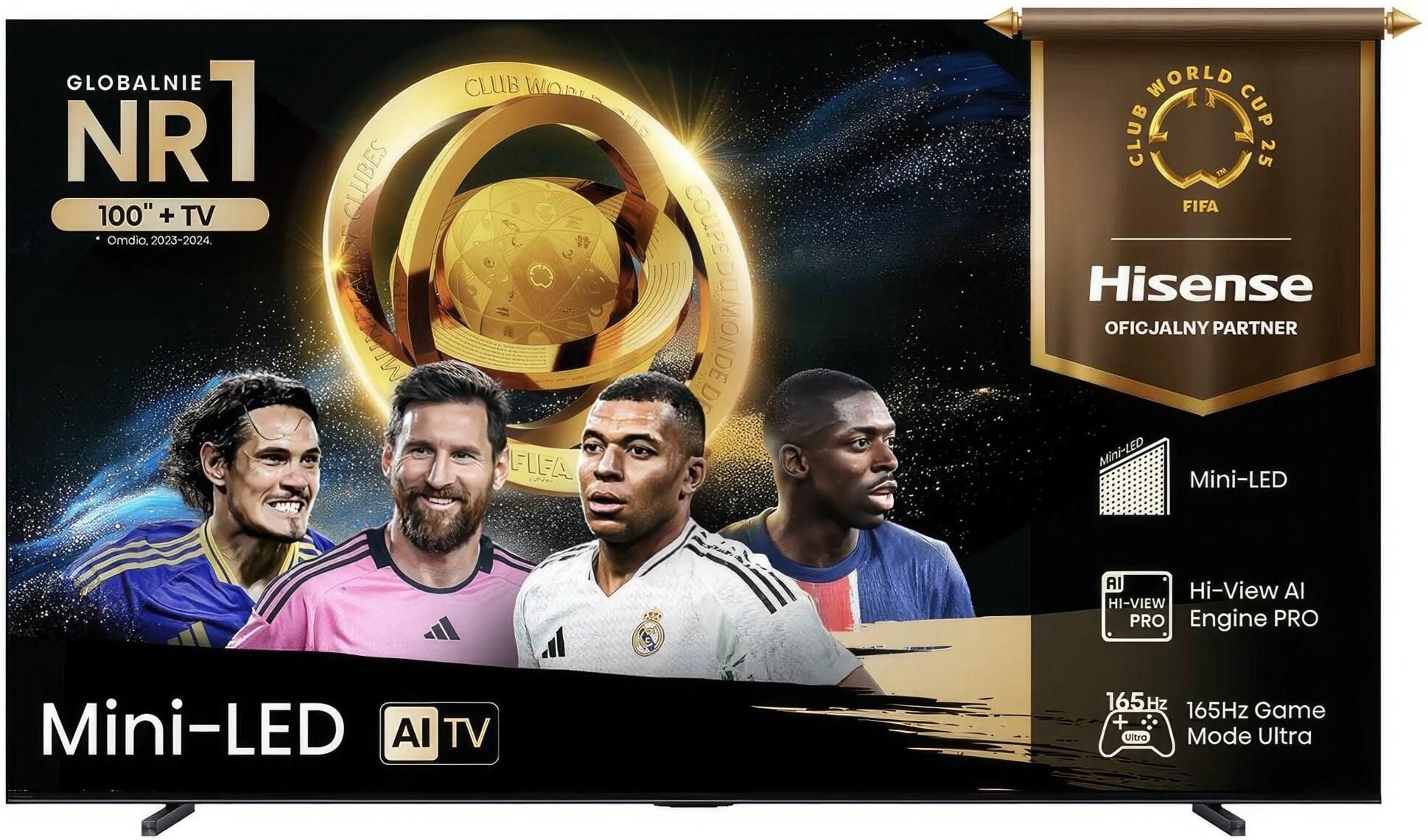 Mini-LED Hisense 85U78Q Rozmiar przekątnej ekranu: 85 cali Rozmiar przekątnej obrazu: 215 cm Maksymalna rozdzielczość: 4K Ultra HD 3840x2160   KLUCZOWE FUNKCJE Mini-LED Głęboka czerń i wyrazisty obraz Telewizor Mini-LED Hisense 4K zapewnia zachwycającą jakość obrazu dzięki setkom stref lokalnego podświetlenia. Technologia Mini-LED oferuje wysoki kontrast, głęboką czerń i imponującą jasność, które razem tworzą niesamowicie realistyczny obraz. To idealny wybór dla każdego, kto szuka telewizora do filmów, sportu i gier – zarówno w ciągu dnia, jak i wieczorem. Ciesz się lepszym odwzorowaniem detali i intensywniejszymi kolorami, które sprawiają, że każda scena wygląda jak żywa. Telewizor Mini-LED Hisense to nowy poziom domowej rozrywki. QLED Colour,  Pantone Certified Miliardy odcieni, niesamowita głębia barw Zanurz się w świecie żywych, naturalnych kolorów, dzięki technologii QLED Quantum Dot. Każda scena zachwyca intensywnością barw, niesamowitą jasnością i imponującym kontrastem, który wydobywa detale, jakich wcześniej nie dostrzegałeś. Telewizor Hisense QLED 4K odwzorowuje miliardy odcieni – zarówno ciepłych, jak i chłodnych – z precyzją, która sprawia, że obraz wygląda jak żywy. To idealny wybór dla miłośników kina, sportu i grania w najwyższej jakości. 144Hz Game Mode PRO Zwyciężaj dzięki 144Hz VRR – Tryb gry PRO dla graczy wymagających 144Hz Game Mode PRO to funkcja zaprojektowana z myślą o graczach, którzy oczekują ultrapłynnej rozgrywki i pełnej kontroli nad każdą klatką. Częstotliwość odświeżania 144 Hz oraz technologia VRR (Variable Refresh Rate) zapewniają minimalne opóźnienia i natychmiastową reakcję na każdy ruch. Zyskaj przewagę nad przeciwnikami dzięki niskiemu input lagowi, dynamicznej zmianie FPS i responsywnemu menu gracza. Niezależnie, czy grasz na konsoli czy PC – telewizor gamingowy Hisense dostarczy maksymalną płynność i przewagę tam, gdzie liczy się każda sekunda. Hi-View AI Engine Inteligentny ekspert od obrazu Hi-View AI Engine to zaawansowany procesor obrazu z technologią sztucznej inteligencji, który w czasie rzeczywistym analizuje i optymalizuje każdą klatkę wyświetlaną na ekranie. Funkcja AI Upscaling poprawia jakość treści o niższej rozdzielczości, skalując je nawet do poziomu 4K Ultra HD. Obraz staje się ostrzejszy, bardziej szczegółowy i perfekcyjnie dopasowany do rodzaju oglądanej treści – niezależnie, czy oglądasz filmy, seriale, transmisje sportowe, czy grasz w gry. To telewizor z procesorem AI, który automatycznie dostosowuje parametry jasności, kolorów i kontrastu, zapewniając maksymalnie realistyczne wrażenia bez potrzeby ręcznej konfiguracji. AI 4K Upscaler Obraz jak w natywnym 4K, nawet z niższej rozdzielczości Technologia AI 4K Upscaler w telewizorach Hisense inteligentnie analizuje każdy piksel materiału w niższej rozdzielczości i automatycznie poprawia jego ostrość, kolory i detale. Dzięki temu nawet starsze filmy, seriale i programy wyglądają jak w natywnym 4K – wyraźniej, ostrzej i bardziej realistycznie. Ciesz się ulubionymi treściami w jakości zbliżonej do 4K Ultra HD, bez kompromisów, na dowolnym źródle sygnału. AI Light Sensor Inteligentna jasność dla komfortowych seansów Funkcja AI Light Sensor w telewizorze Hisense inteligentnie dopasowuje jasność ekranu do warunków oświetleniowych w pomieszczeniu. Dzięki temu obraz pozostaje czytelny, wyraźny i przyjemny dla oczu – zarówno w słoneczny dzień, jak i podczas wieczornego seansu. Zadbaj o wzrok i komfort całej rodziny, oglądając ulubione treści w optymalnych warunkach. Czujnik światła wpływa również na niższe zużycie energii, co czyni telewizor bardziej ekologicznym i energooszczędnym. AI Chroma Light Sensor Idealny obraz 4K w każdych warunkach oświetleniowych Zaawansowany czujnik światła AI Chroma w telewizorze Hisense automatycznie reguluje jasność ekranu i temperaturę barw, dopasowując je do aktualnych warunków oświetleniowych. Niezależnie od tego, czy oglądasz film w pełnym słońcu, wieczorem przy lampce, czy w całkowitej ciemności – obraz zawsze jest żywy, kontrastowy i realistyczny. Inteligentna technologia AI zapewnia najwyższy komfort oglądania, eliminując konieczność ręcznego dostosowywania ustawień. Ciesz się idealnym obrazem 4K w każdych warunkach, bez kompromisów. AI HDR Upscaler Efekt HDR nawet ze standardowych treści SDR Dzięki technologii AI HDR Upscaler w telewizorach Hisense, nawet standardowe materiały SDR zyskują jakość zbliżoną do HDR – z większą głębią obrazu, intensywniejszym kontrastem i bogatszymi kolorami. Sztuczna inteligencja analizuje i ulepsza każdą scenę, sprawiając, że obraz wygląda realistycznie, nawet jeśli treść nie została pierwotnie nagrana w formacie HDR. Oglądaj swoje ulubione filmy i programy z efektem HDR – bez ograniczeń. AI Sports Mode Tryb sportowy 4K dla płynnych i realistycznych transmisji AI Sports Mode w telewizorach Hisense 4K automatycznie optymalizuje obraz i dźwięk do transmisji sportowych, zapewniając realistyczne i dynamiczne wrażenia. Funkcja eliminuje smużenie, wzmacnia kolory, poprawia słyszalność komentarza i zwiększa płynność ruchu. Oglądaj mecze, wyścigi i zawody z maksymalnym komfortem – tak jakbyś był na stadionie. Idealny tryb sportowy do oglądania wydarzeń na żywo. AI Smooth Motion Płynność bez kompromisów, zero rozmyć Telewizor Hisense z AI Smooth Motion to gwarancja krystalicznie czystego, płynnego obrazu – nawet przy bardzo dynamicznych scenach. Dzięki panelowi 144Hz, technologii MEMC i redukcji szumów 3D, każdy ruch jest odwzorowany ostro i bez rozmyć – bez względu na to, czy oglądasz sport, akcję czy grasz w szybkie gry. Funkcja AI Smooth Motion analizuje i koryguje każdy kadr, eliminując zacięcia oraz smużenie obrazu. To idealne rozwiązanie d