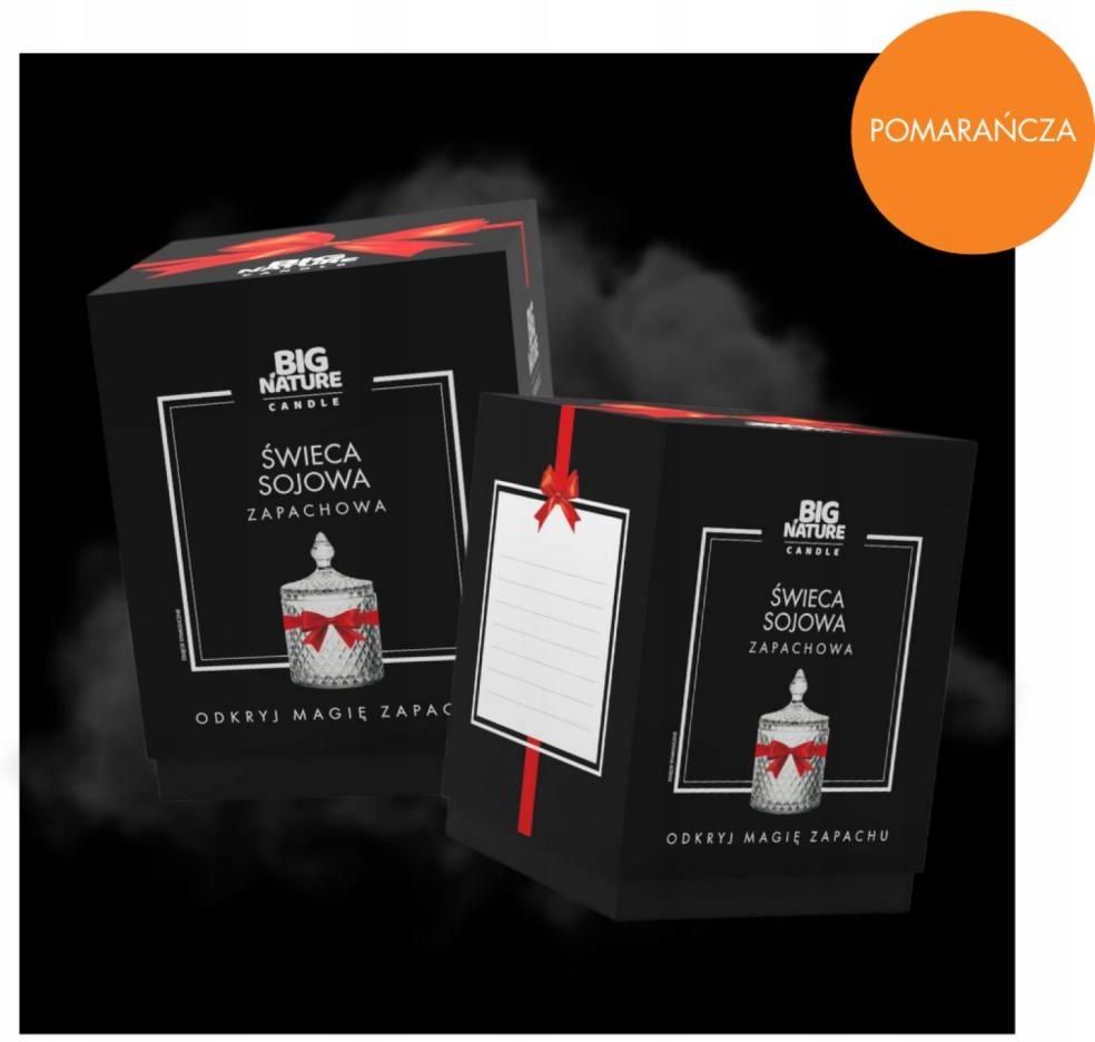 Świeca sojowa o zapachu POMARAŃCZA 485g PREZENTOWA Odwieczna elegancja spotyka naturalną harmonię. Elegancka świeczka sojowa o delikatnym aromacie świeżo obranej pomarańczy, stworzona, aby wypełnić twój dom ciepłem i przyjemnym zapachem cytrusowej świeżości. Średnica słoika: 10,2cm; Wysokość słoika: 18,0cm Świeca Sojowa - Prezent, który Zatrzymuje Czas Nasze świeczki sojowe to więcej niż tylko doskonały aromat. To prezent, który zatrzymuje czas, zapraszając do chwil relaksu i błogiego spokoju. Idealny dla tych, którym chcesz podarować wyjątkową pamiątkę, owianą subtelnym ciepłem i zapachem. Odkryj Doskonałość w Świecie Świec Sojowych Premium Zanurz się w świecie naszych świec sojowych prezentowych, gdzie elegancja i doskonałość spotykają się z niezapomnianym zapachem. Nasze wyjątkowe kompozycje zapachowe są owocem pasji, a każda świeca to dzieło sztuki, które czuje się każdym zmysłem Elegancja w Detalu, Luksus w Zapachu Postawiliśmy na naturę i jakość, wykorzystując naturalny wosk sojowy najwyższej jakości. Nasze świece palą się dłużej, delikatnie rozpuszczając się w intensywnych aromatach, które podkreślają niepowtarzalność każdego pomieszczenia. Czar Czarnego Pudełka - Wyraz Wyjątkowości Nasza świeca sojowa kryje się w ekskluzywnym czarnym pudełku, które nie tylko chroni skarb w postaci świecy, ale także podkreśla jej wyjątkowość. To nie jest tylko opakowanie, to rytuał otwierania, który rozpoczyna niezwykłą podróż zapachową. Twój Osobisty Ślad, Twoje Słowa Daliśmy miejsce dla indywidualnego przekazu. Wyraź swoją miłość, radość lub wdzięczność - to niech będzie Twoja niepowtarzalna dedykacja. Troszcząc się o nasze zdrowie, warto zauważyć pozytywny wpływ aromaterapii zarówno na nasze ciało, jak i umysł. Dlatego świeca zapachowa stanowi doskonały dodatek do naszych domów, wspierając nasze samopoczucie i tworząc przyjemną atmosferę. Unikalna formuła zapachowa Nasze świece sojowe kryją w sobie formułę zapachową, która podkreśla jedność danego aromatu. Każda świeca to wyrazista esencja, która nie potrzebuje dodatkowych słów. Wprowadzamy Cię w świat, gdzie aromatyczna wyróżnialność staje się jednocześnie prostą i wyrafinowaną mową zapachów.
