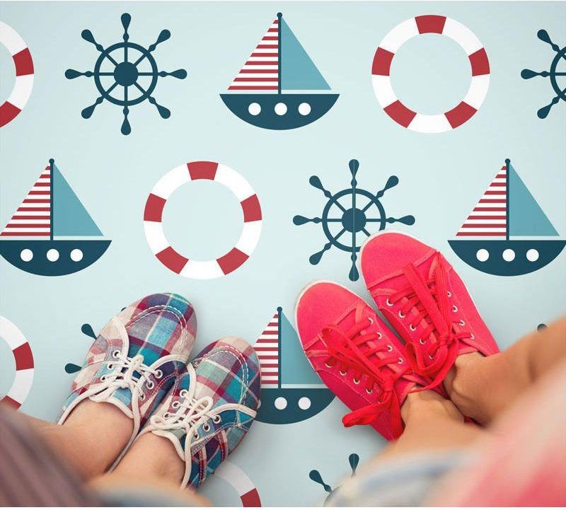 Wykładzina podłogowa PCV z pełnokolorowym nadrukiem Wzór MARYNISTYCZNY jak na miniaturach i zdjęciach w galerii produktu z możliwością zmiany skali wzoru Motywy żeglarskie - koło ratunkowe, ster, żaglówka w pastelowej tonacji - dominują odcienie koloru niebieskiego Cena podstawowa dotyczy 1 mb …