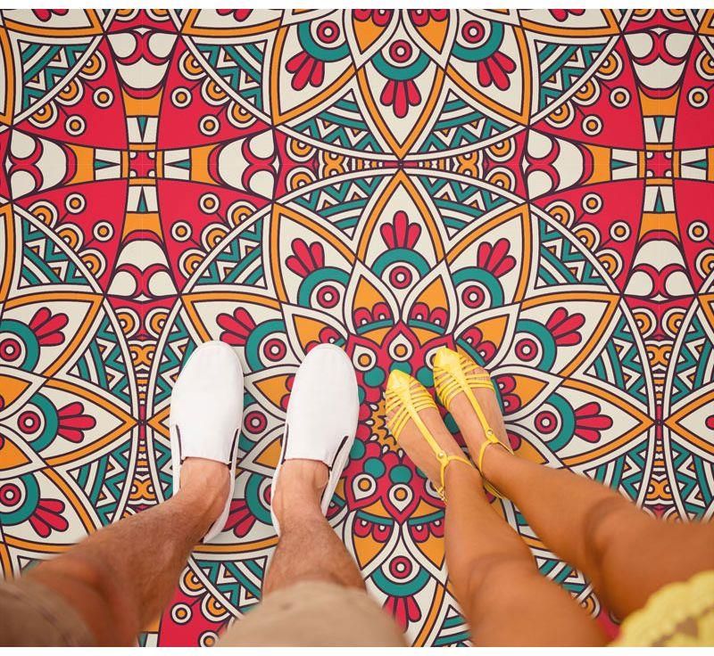 Wykładzina podłogowa PCV z pełnokolorowym nadrukiem Wzór ROZETY czerwone tło jak na miniaturach i zdjęciach w galerii produktu z możliwością zmiany skali wzoru Cena podstawowa dotyczy 1 mb szerokości 150cm czyli 1,5m2 Produkt jest wykonywany po złożeniu zamówienia i przedpłacie - nie pochodzi z magazynu. wzór może być np pomniejszony lub powiększony wg życzenia klienta i wykonywany o określonej długości - dlatego nie podlega zwrotowi/wymianie. Czas realizacji zamowień do 40 m.kw.: do 3 dni roboczych. Dla większych ilości ustalamy termin indywidualnie. Szerokość roli brutto (całej): 157 cm, szerokość druku: 155 cmm, Szerokość roli netto (po przycięciu podczas układania u klienta): 150 cm, Wykładzina jest wysyłana bez docięcia dlatego, żeby klient przy układaniu miał możliwość ułożyć wykładzinę na zakładkę i dociąć ją z góry na szerokość 150 cm. Dzięki temu uzyska równe ułożenie poszczególnych pasów. Inne cechy wykładziny z nadrukiem materiał: printMAT™ - bezzapachowy, produkcji UE, dedykowany do wymagającej grafiki podłogowej, grubość: 2,2 mm, skład surowcowy: 85% PVC, 15% POLIESTER, gramatura: 1000 ± 100 g/m.kw. nietoksyczny, bezzapachowy druk z certyfikatem GreenGuard antypoślizgowy elastyczny spód z pianki PCV, antypoślizgowy wierzch z estetycznym matowym wykończeniem, bezpośredni nadruk wykonany w technologii UV, wzór zachowuje nasyconą kolorystykę nawet wystawiony bezpośrednio na promienie słoneczne, wykładzina jest odporna na rozciąganie, rozdarcia i zginanie, Kupisz łatwo bez rejestracji i logowania - wpisz odpowiednią ilość metrów bieżących, dodaj do koszyka, następnie wypełnij formularz dostawy i dokonaj przedpłaty